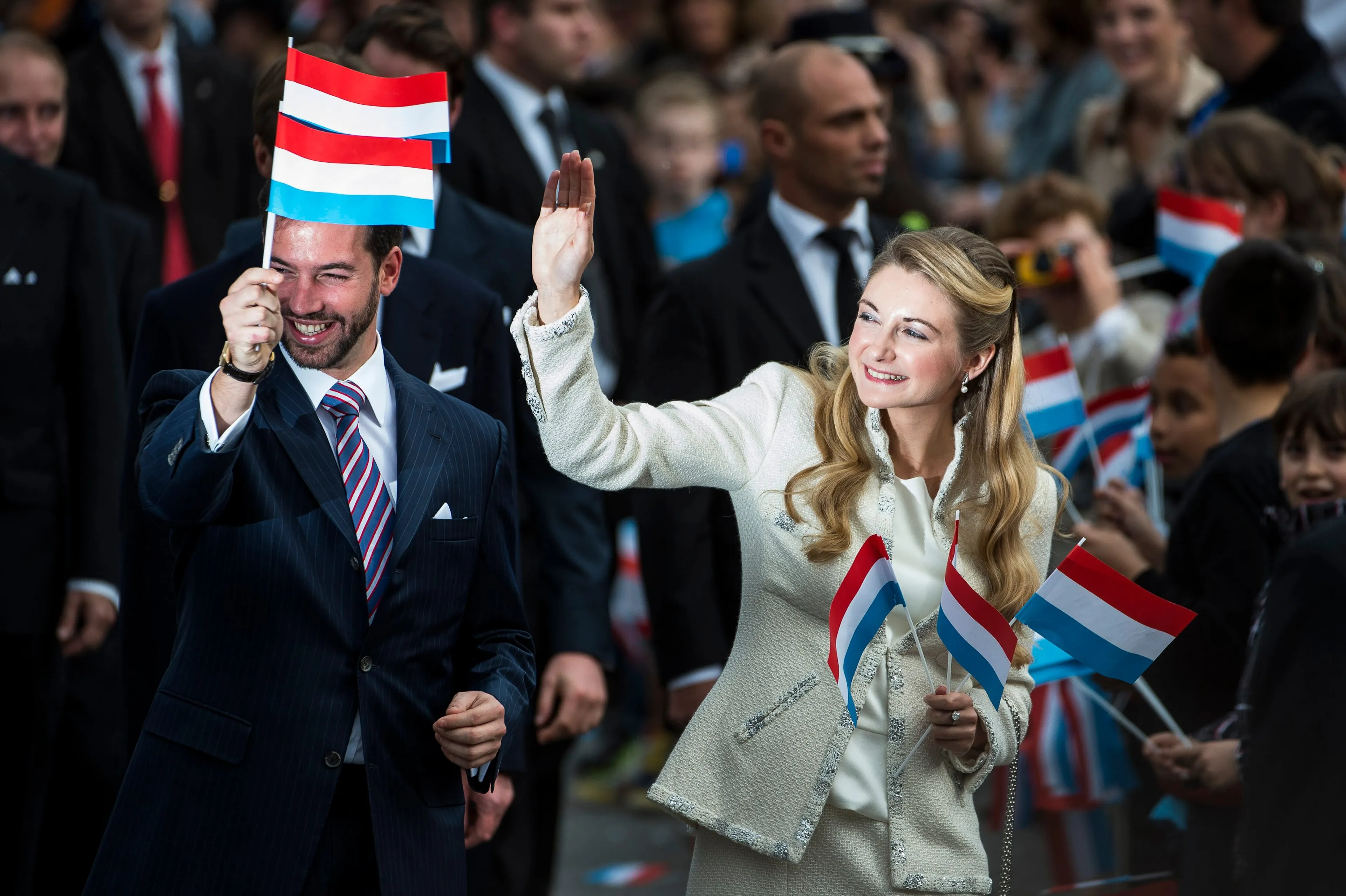 ...groothertogin! In Luxemburg kennen ze geen koning of koningin, omdat het geen koninkrijk maar een groothertogdom is. Daarom zijn Stéphanie en Guillaume nu nog erfgroothertogin en erfgroothertog. En haar pasgeboren zoontje, wordt die dan erf-erfgroothertog? Hoogstwaarschijnlijk gewoon prins...