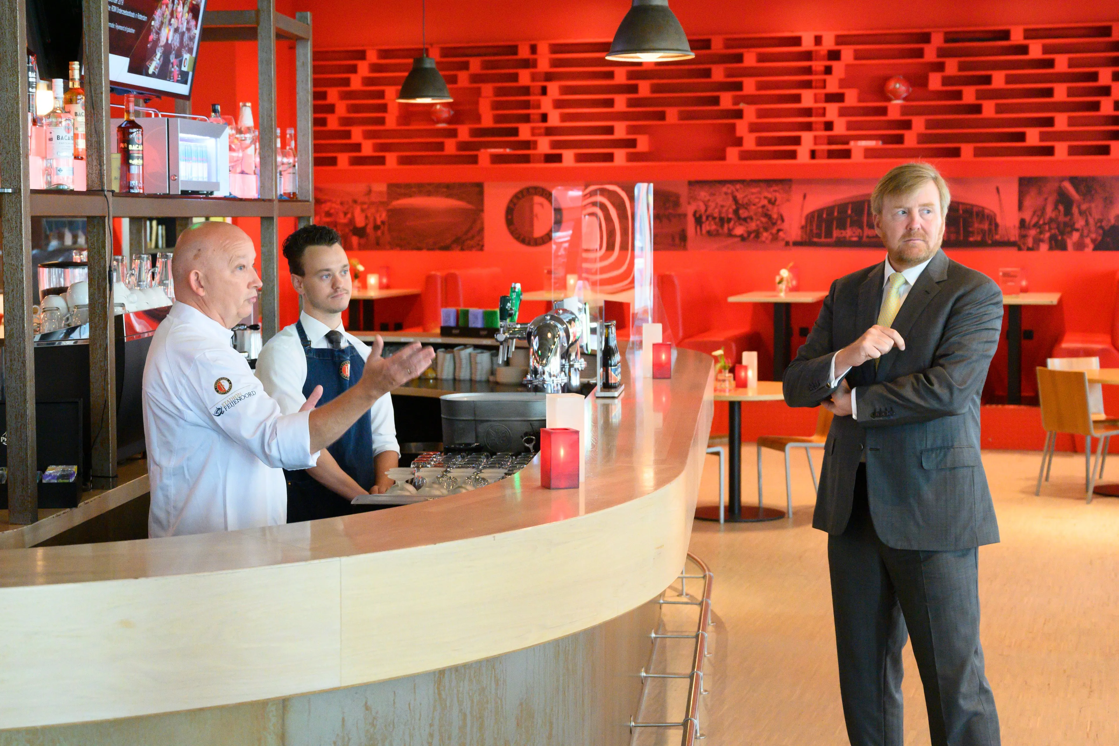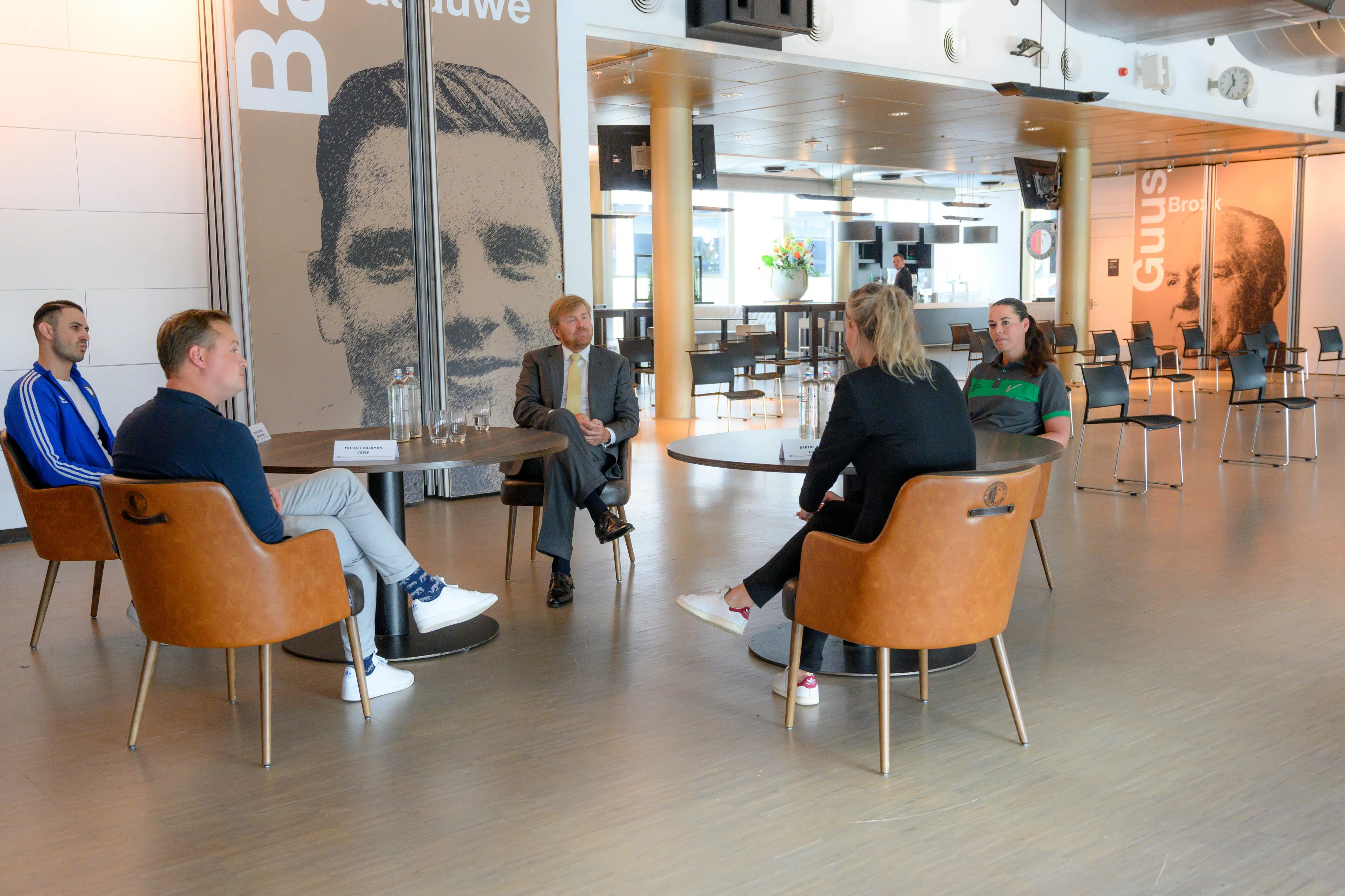 De koning besloot zijn werkbezoek in het naast het stadion gelegen Maasgebouw waar in gesprekken verder werd ingegaan op de gevolgen van de corona-uitbraak voor de evenementensector.