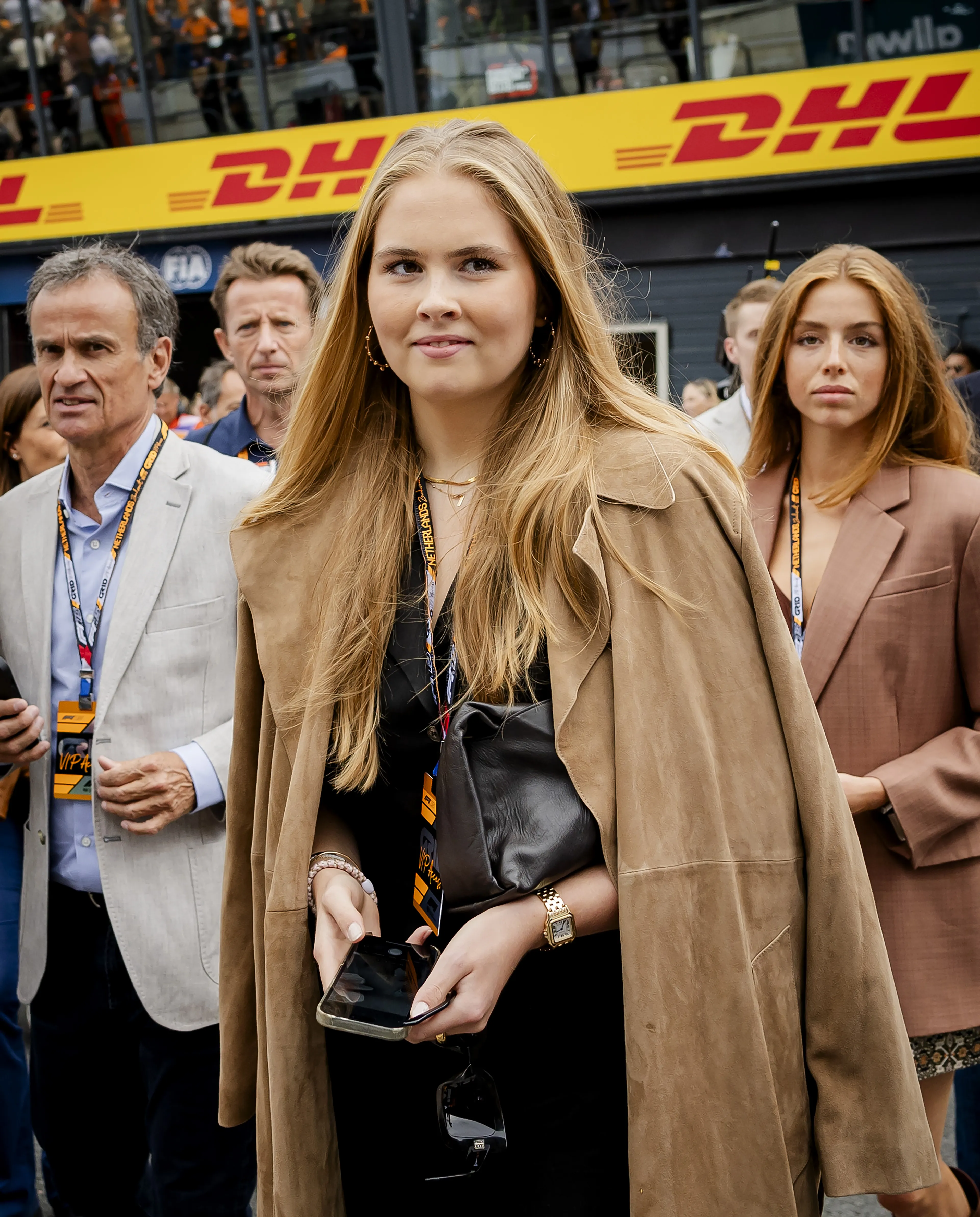 Het gezin van koning Willem-Alexander en koningin Máxima bezocht dit jaar wederom de Dutch Grand Prix op het racecircuit Zandvoort. Prinses Amalia droeg een verrassend betaalbare suède jas van Mango. De leren tas maakte het geheel direct heel stoer.