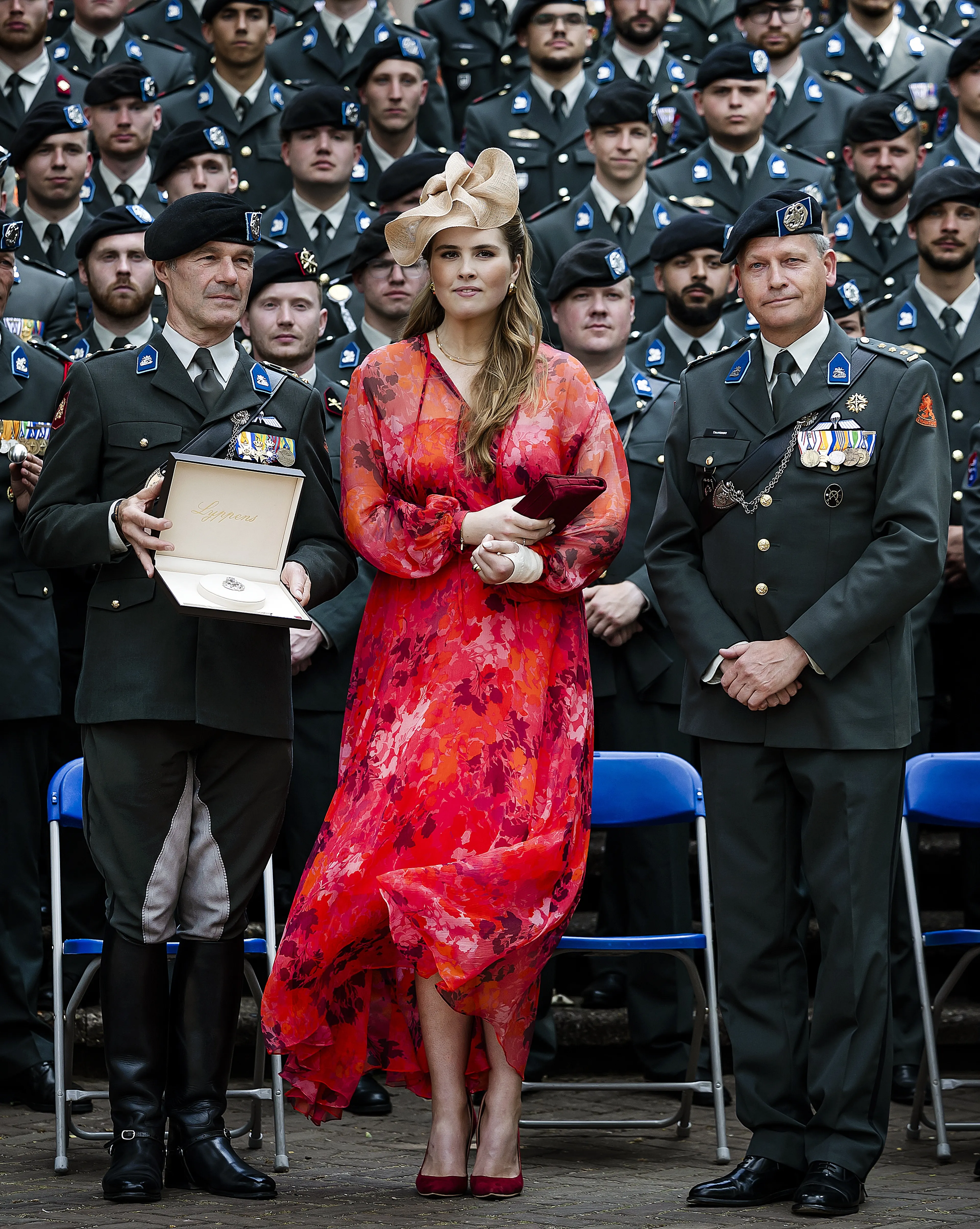 Op 18 juni stond er voor de Prinses van Oranje een bezoek op de agenda aan het Regiment Huzaren Prinses Catharina-Amalia. Het was voor het eerst na de val van haar paard, waar ze een gebroken arm aan overhield. Hierdoor moest haar arm in een sling tijdens het bezoek. De bloemenjurk waar ze in verscheen is van modehuis Natan en het hoofddeksel van Fabienne Delvigne leende ze van haar moeder.