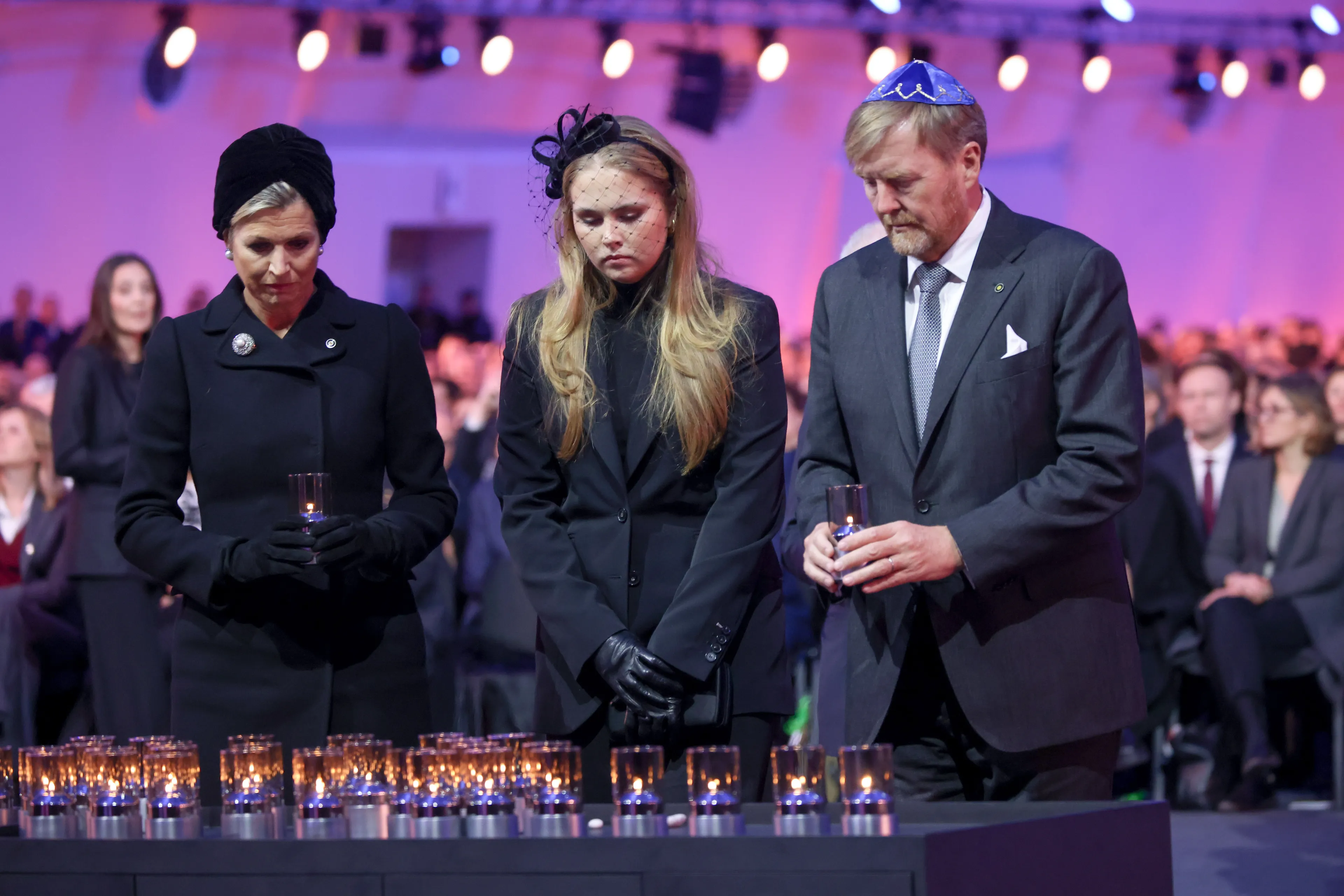 Op 27 januari zagen we prinses Amalia voor het eerst dit jaar in de openbaarheid. Ze vergezelde haar ouders bij de herdenking van de 80-jarige bevrijding van het voormalige Duitse concentratie- en vernietigingskamp Auschwitz-Brikenau. De Prinses van Oranje ging stemmig gekleed in een zwart broekpak met bijpassende coltrui en warme wollen mantel. In haar haren droeg zij een haarband met voile.
