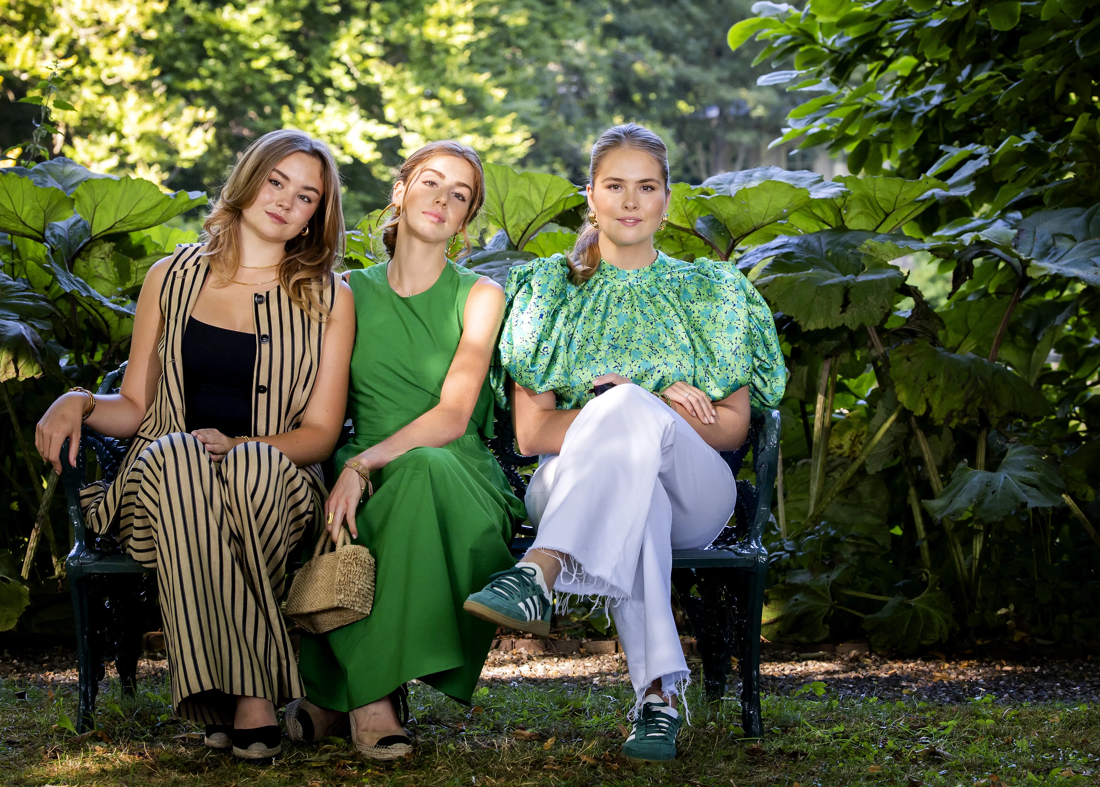 Net geopereerd en dan alweer voor de camera's verschijnen. Dat gebeurde prinses Amalia deze zomer. De fotosessie moest worden verplaatst omdat de Prinses van Oranje onder het mes moest na een val van haar paard. Ze verscheen in de tuin van Paleis Huis Ten Bosch in een eenvoudige witte jeans met daarop een groene bloementop met pofmouwen van het Scandinavische merk ROTATE. De groene Adidas-sneakers maakten de look lekker casual.