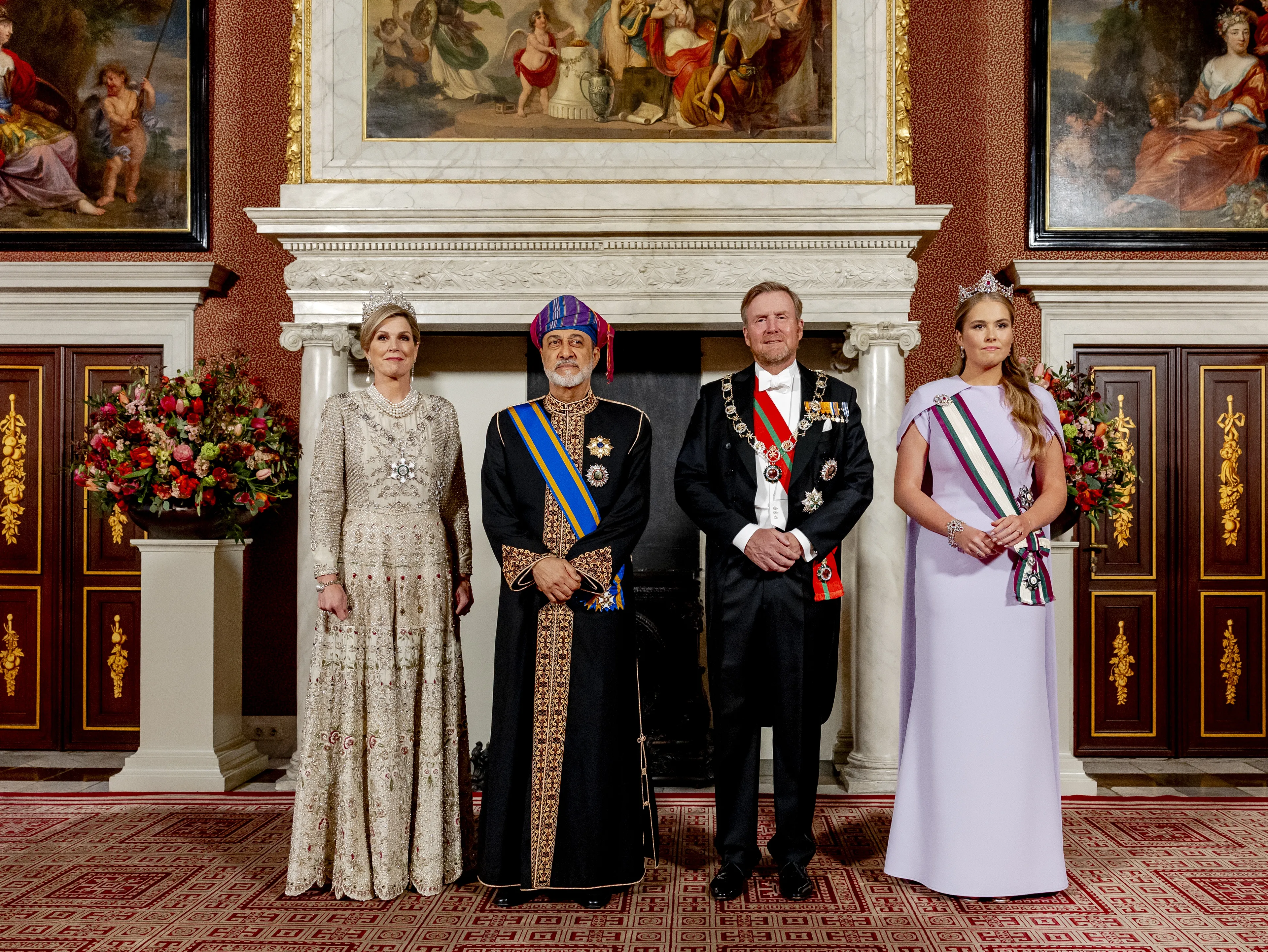 Tijdens het staatsbanket, onderdeel van het inkomende staatsbezoek van Oman in april, mocht Amalia zich in galakleding hullen. Ze liet haar oog vallen op een lila capejurk van Safiyaa. Maar alle aandacht ging vooral uit naar het door haar gekozen diadeem, het Mellerio diadeem.