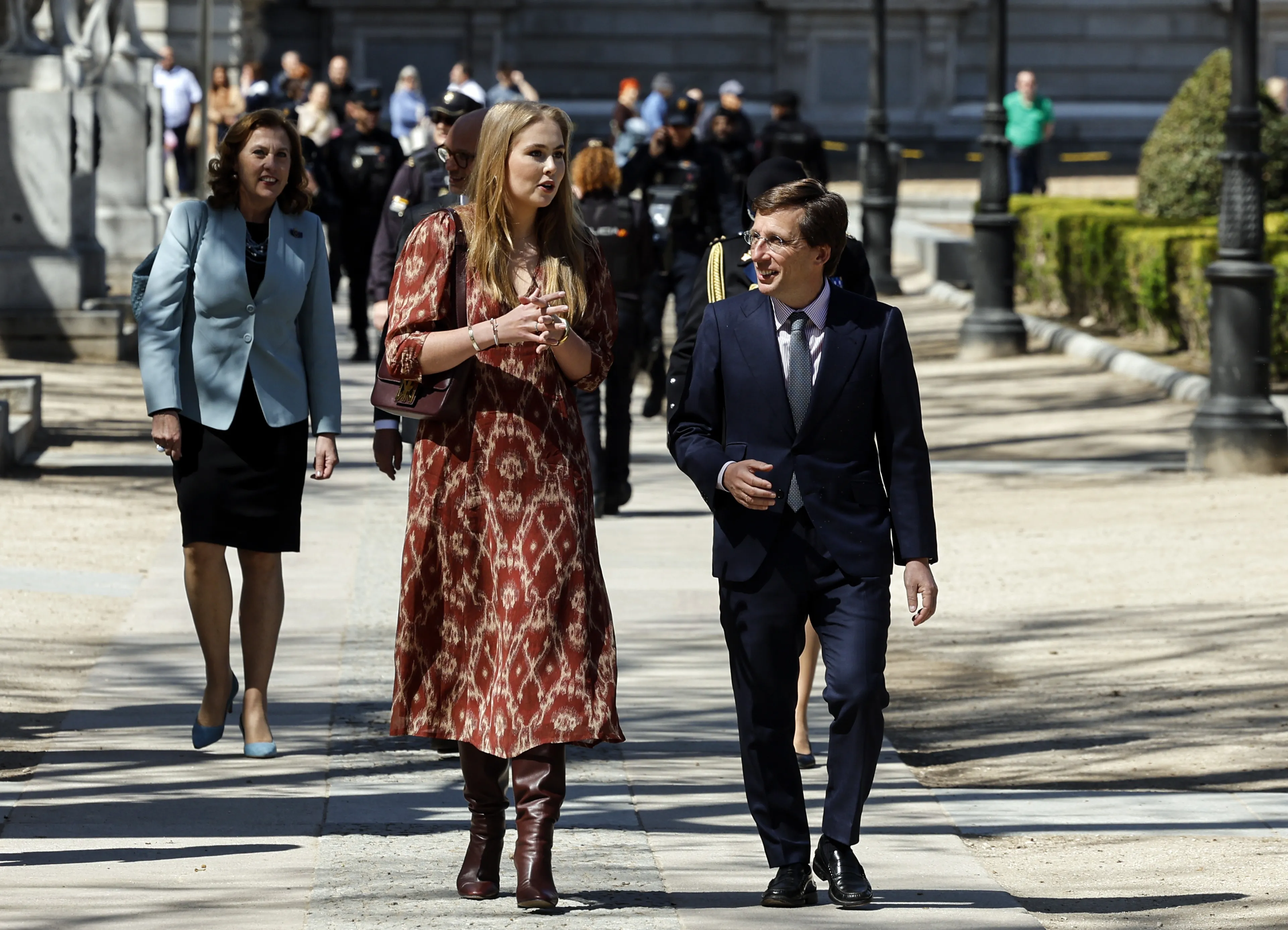 Begin april ging prinses Amalia terug naar Madrid: de stad waar zij een tijd lang woonde en studeerde omdat het in Nederland te gevaarlijk voor haar was. Als blijk van dank onthulde de prinses een plaquette bij een tulpentuin in het park. Voor deze gelegenheid droeg Amalia een bordeauxrode jurk met print van ba&sh. De laarzen leende zij van haar moeder, koningin Máxima. Extra leuk was dat de prinses daar in het Spaans de pers te woord stond.