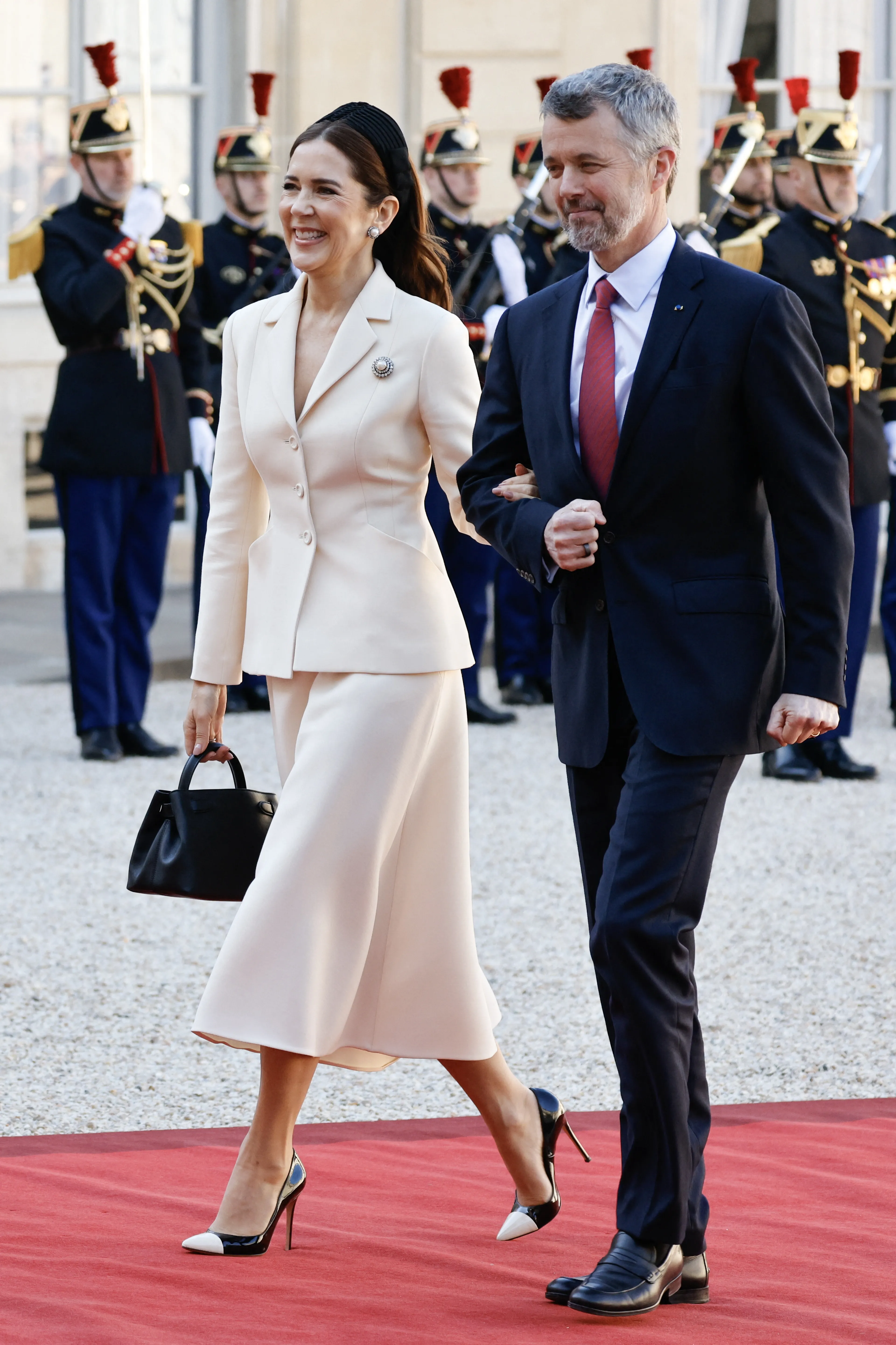 Begin dit jaar brachten koning Frederik en koningin Mary van Denemarken een staatsbezoek aan Frankrijk. Voor deze gelegenheid koos koningin Mary een passende outfit, namelijk het Bar-jasje van Dior met de bijpassende rok. De Deense koos voor een ecrukleurige set.
