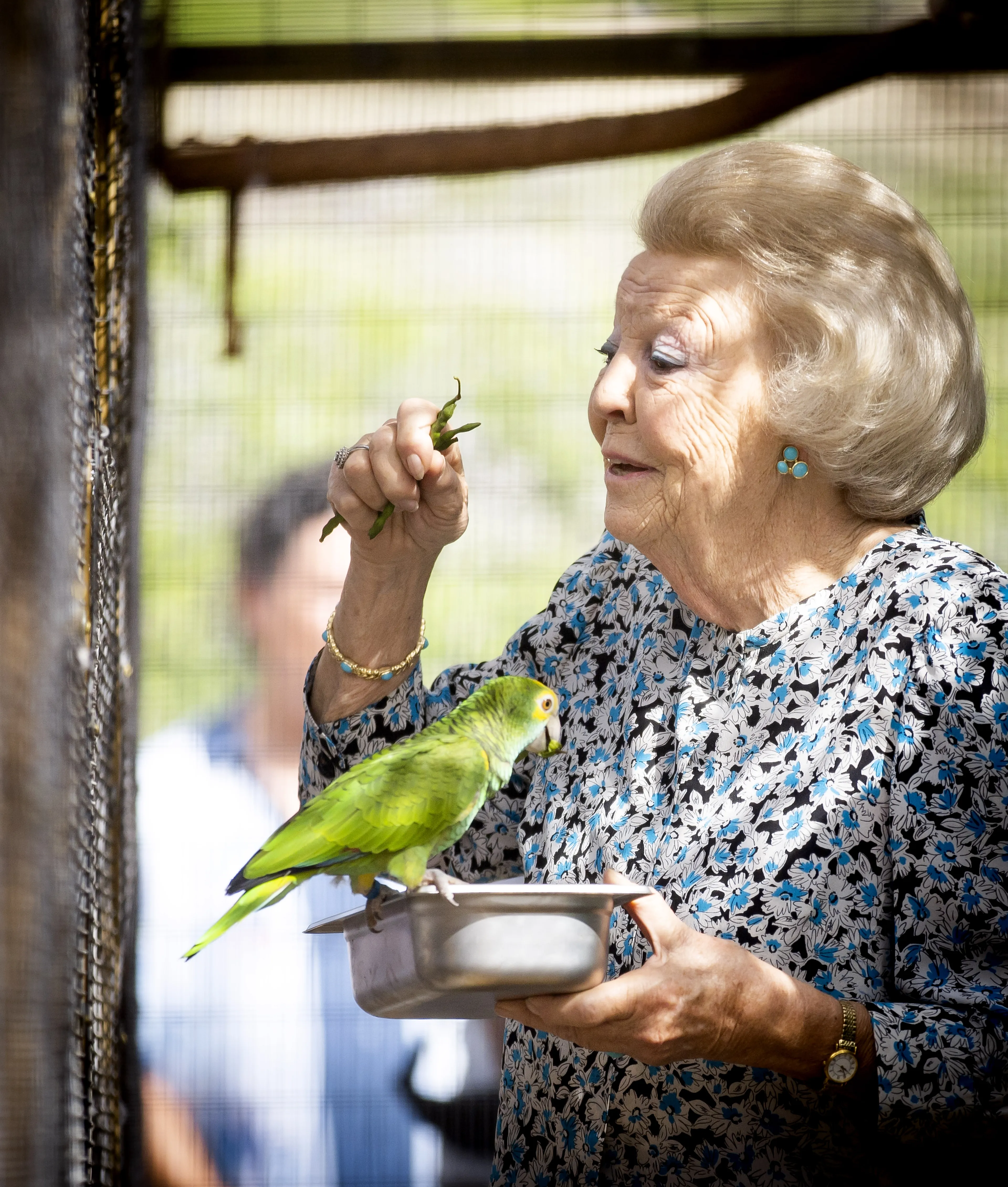 Beatrix begon de dag in Parke Nacional Arikok. Hier zet het Aruba National Park Foundation (FPNA) zich in om een op het eiland uitgestorven vogelsoort te herintroduceren in de natuur. De prinses sprak met medewerkers van FPNA en voerde een aantal lora’s in een kooi. "Ik ben dol op papegaaien", vertelde de prinses toen zij bij de kooi met de groene vogels aankwam.