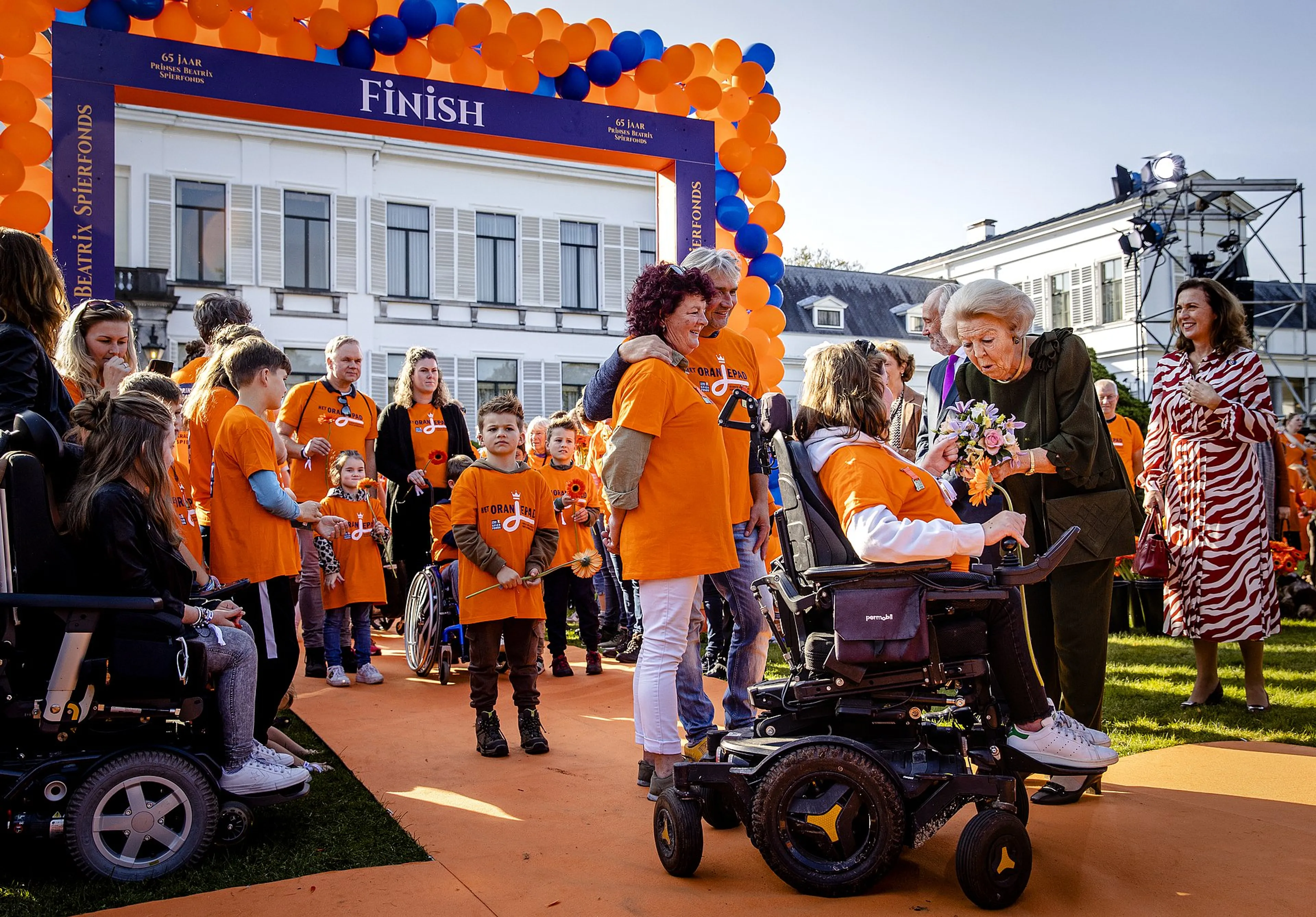 Prinses Beatrix woonde zaterdag in de tuin van paleis Soestdijk de viering van het 65-jarig bestaan van het Prinses Beatrix Spierfonds bij. De 83-jarige prinses is al sinds de oprichting beschermvrouwe van het fonds.