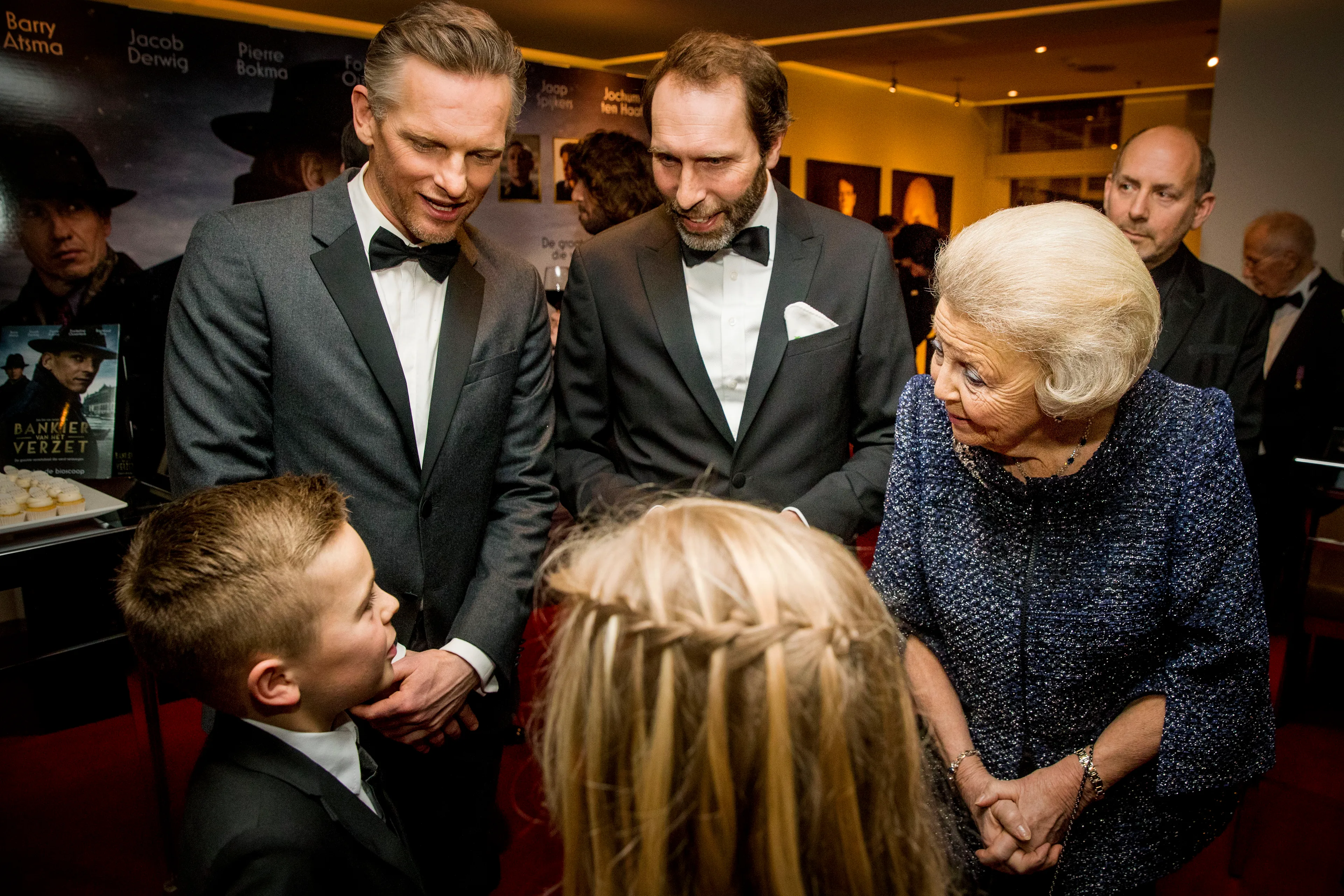 Prinses Beatrix heeft maandagavond in het DeLaMar-theater in Amsterdam de speciale premièrevoorstelling van de Nederlandse film 'Bankier van het Verzet' bijgewoond. De 80-jarige prinses had gezelschap van prinses Margarita en haar echtgenoot Tjalling ten Cate.