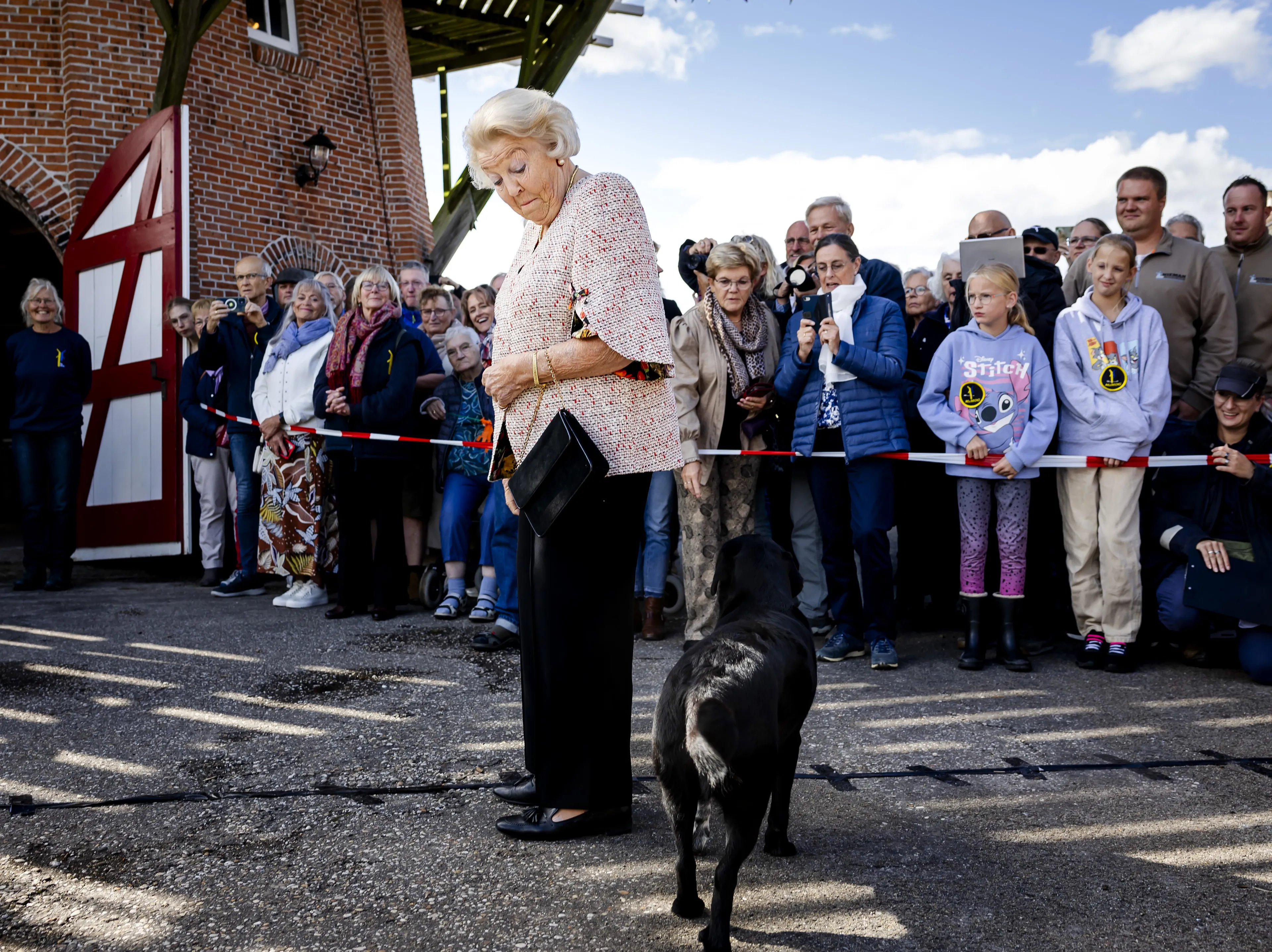 Maar dat is niet het enige spontane moment dat de 86-jarige prinses meemaakt vanmiddag. Vlak na het moment suprême komt er namelijk een zwarte labrador op de prinses afgelopen. Maar omdat de prinses weinig aandacht geeft aan de hond, druipt deze al snel teleurgesteld af. Het mag de pret in Noordbroek niet drukken, want prinses Beatrix glimlacht volop tijdens de heropening van de molen. En het opvallende is dat prinses Beatrix een outfit draagt in een lichte kleur, waar ze normaliter haar ogen laat vallen op meer donkere kleuren. Bekijk de beelden van vanmiddag hieronder.