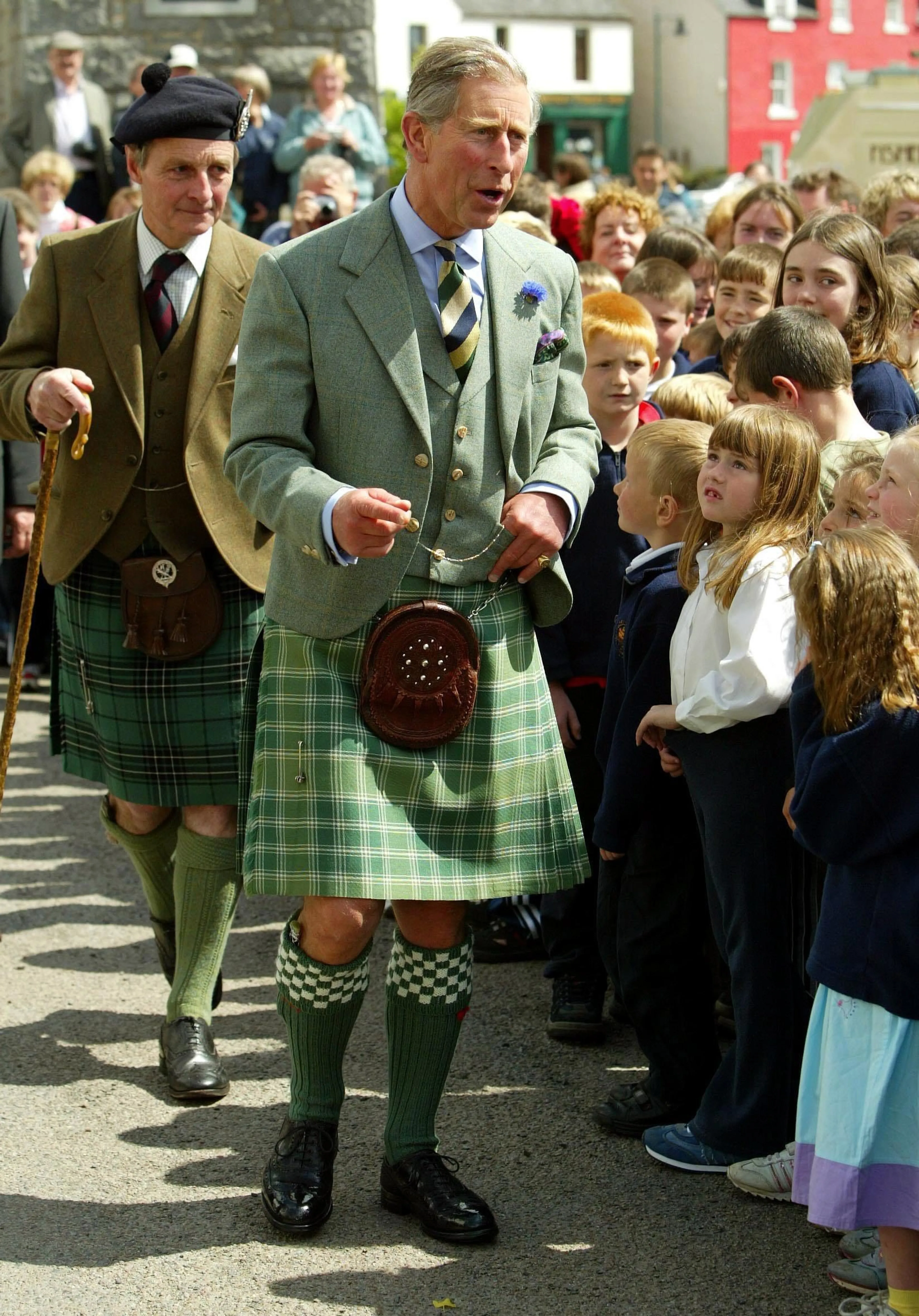 Koning Charles verschijnt regelmatig in een Schotse kilt. De vorst is van jongs af aan op de foto gezet met een kilt, zowel voor persoonlijke als privé-aangelegenheden. leuk feitje: Schotse mannen verschijnen in een kilt op bruiloften, ook al zijn die niet van iemand die Schots is.