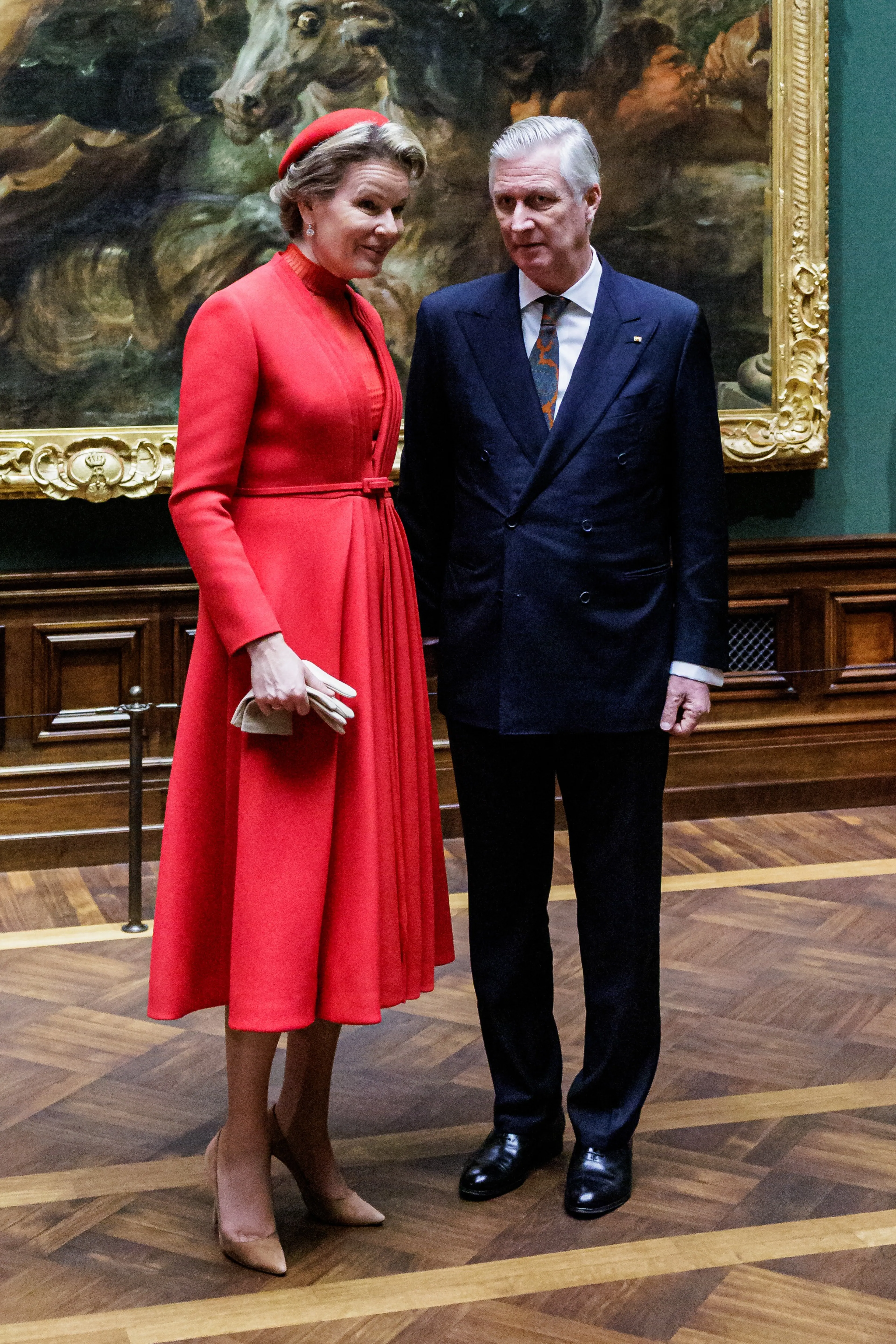 Bij kerst denken we natuurlijk aan de kleur rood! Koningin Mathilde van België draagt tijdens het Belgische staatsbezoek aan Duitsland in 2023 verschillende rode outfits.