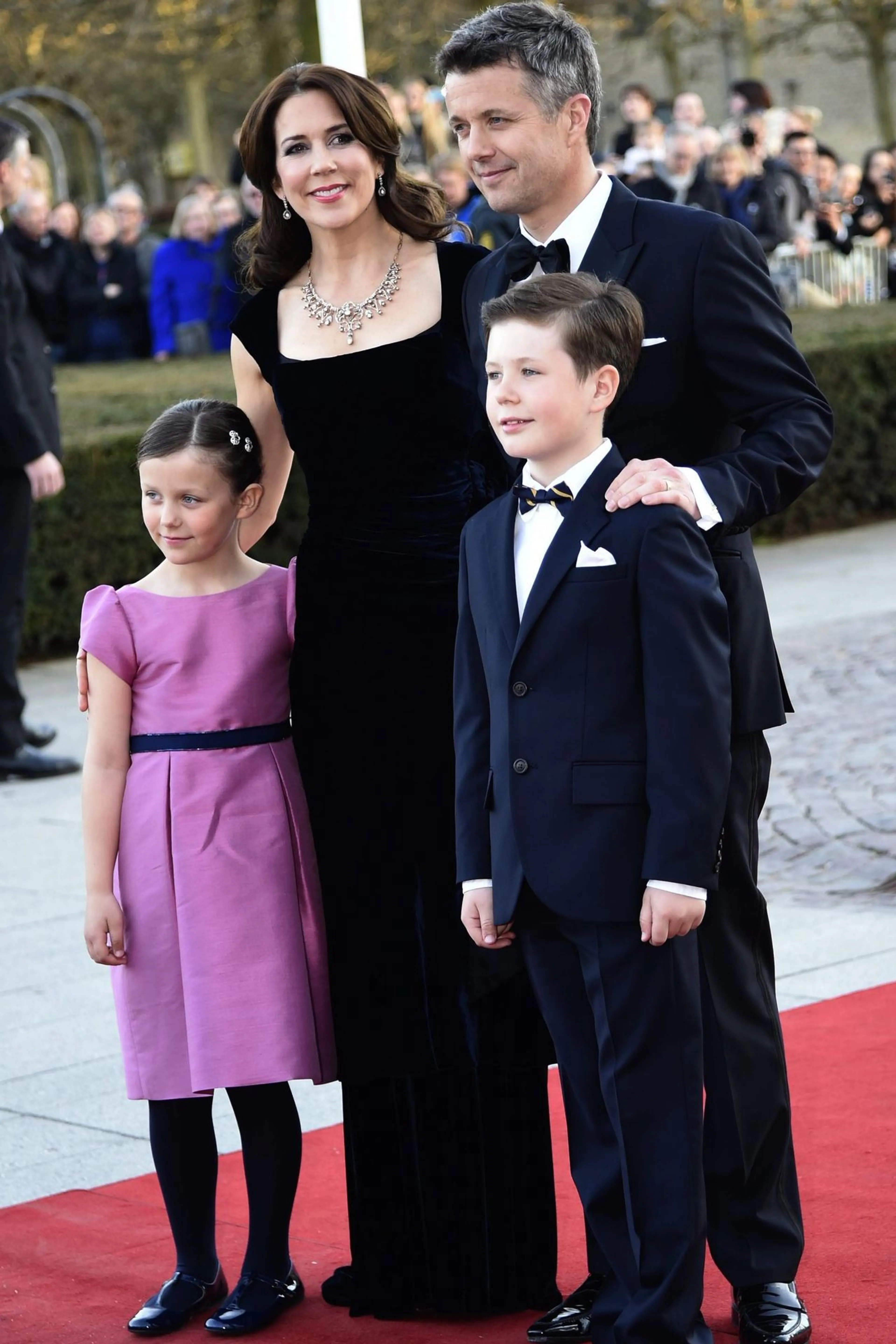 Een lichtgekleurde jurk van kant heeft een wat zachtere uitstraling, maar is nog steeds op en top feestelijk. Dat bewijst kroonprinses Mette-Marit.
