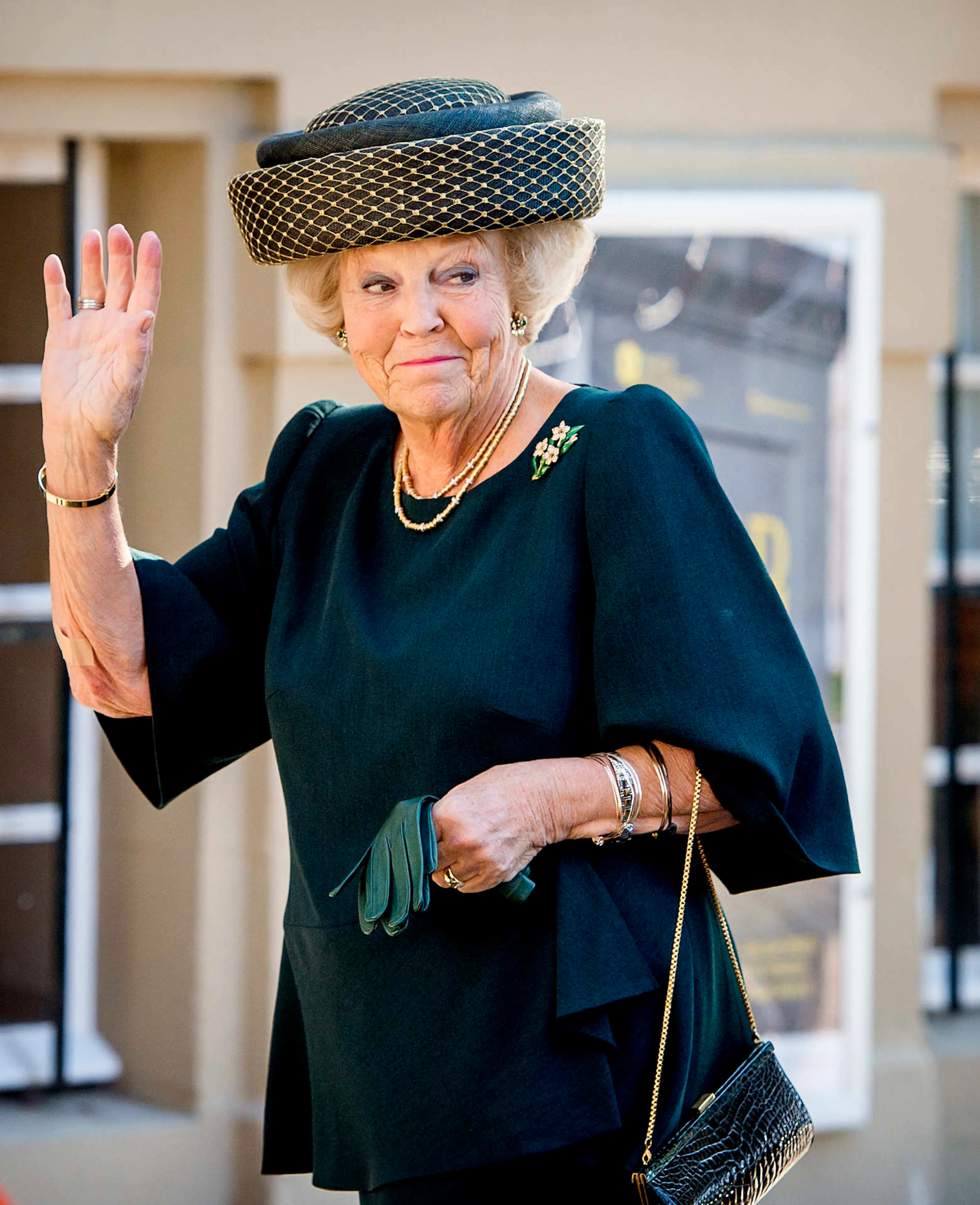 De kleur groen staat ook erg elegant bij prinses Beatrix. Bij de opening van de tentoonstelling ‘Held op Sokkel’ draagt de prinses een donkergroen mantelpakje waar elke dame met kerst in zou stralen.
