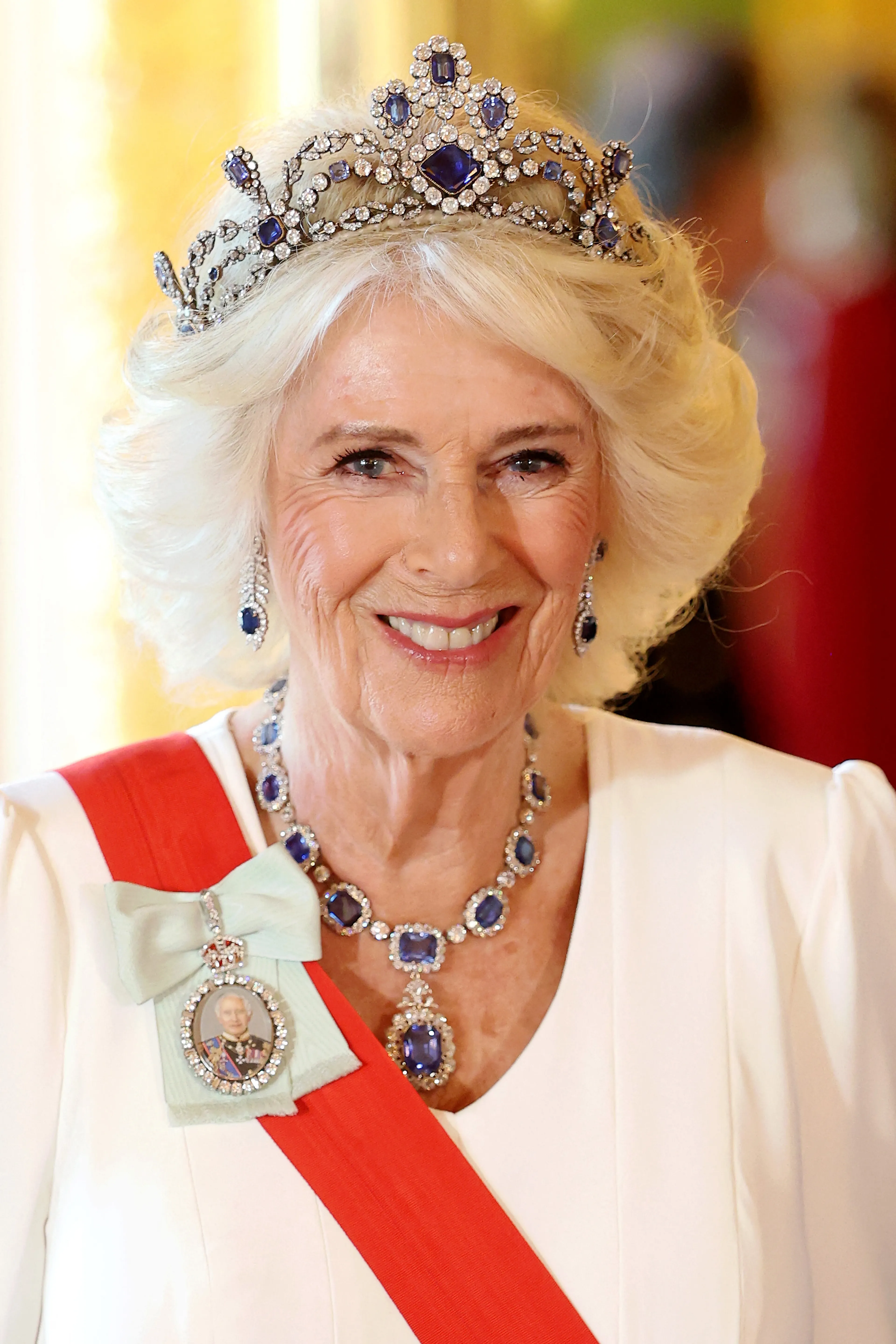 Na het overlijden van koningin Elizabeth in 2022, is ook koningin Camilla de saffieren parure gaan dragen.