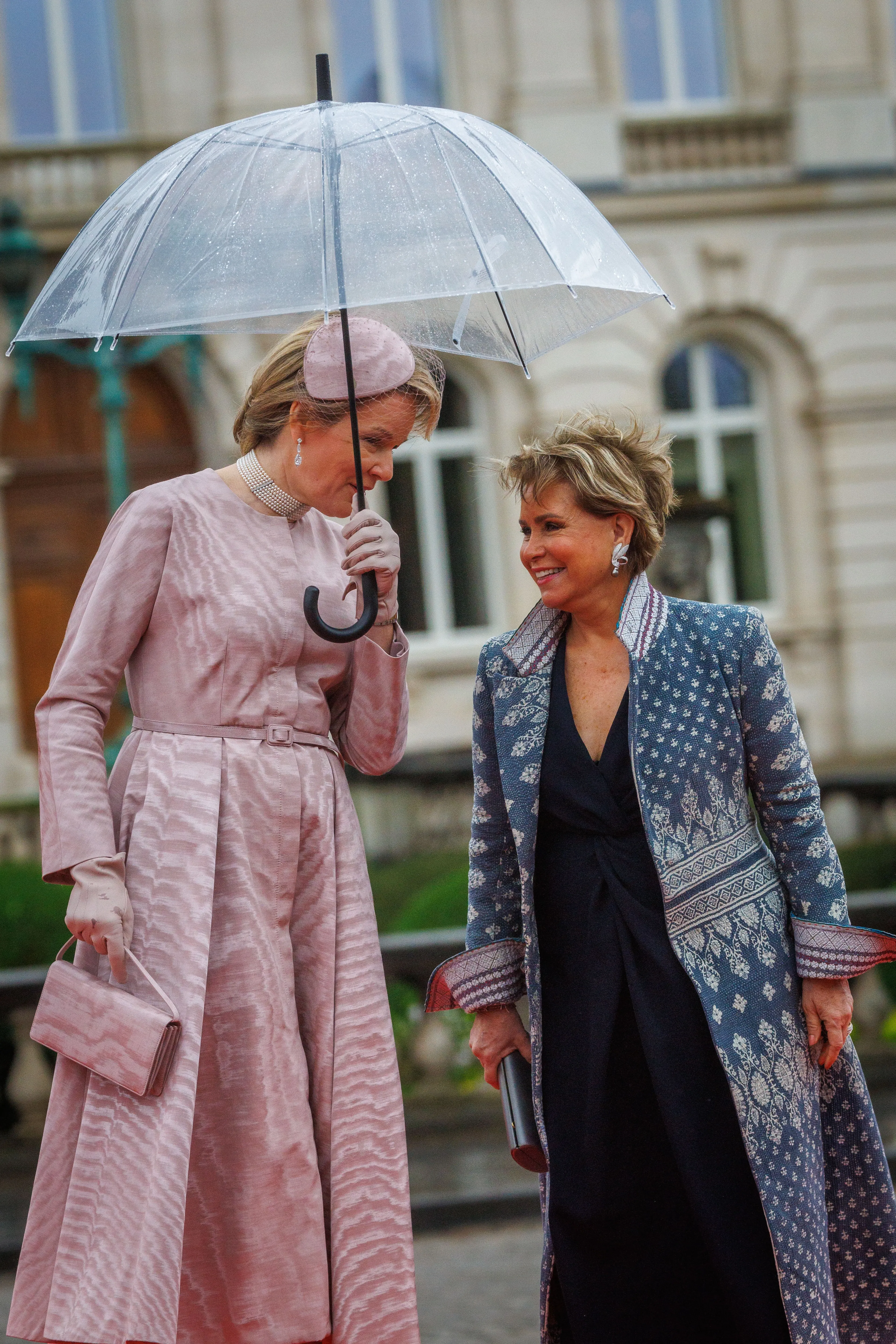 Verderop in Brussel bezochten koningin Mathilde en groothertogin Maria Teresa een tentoonstelling in het Paleis voor Schone Kunsten in Brussel.