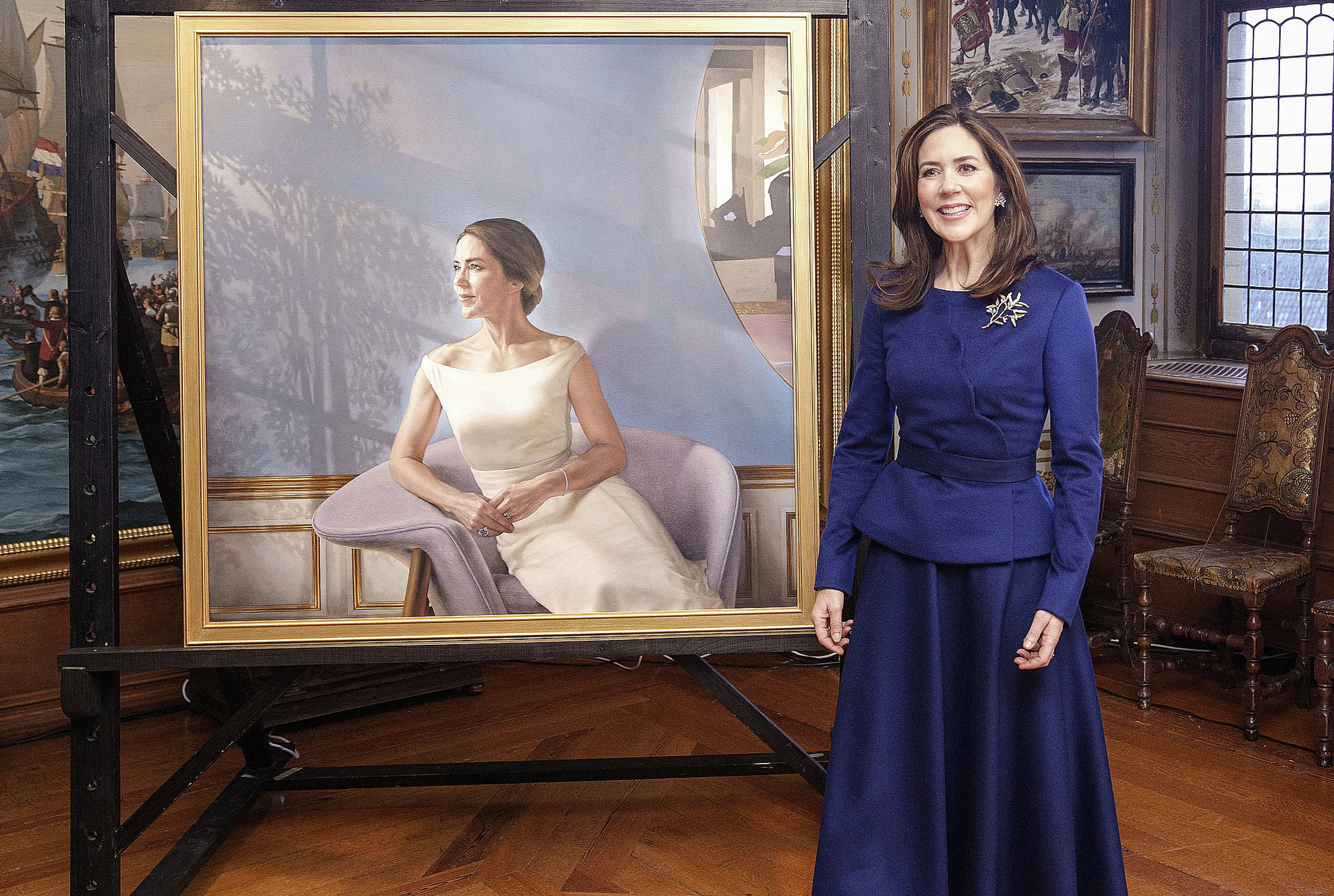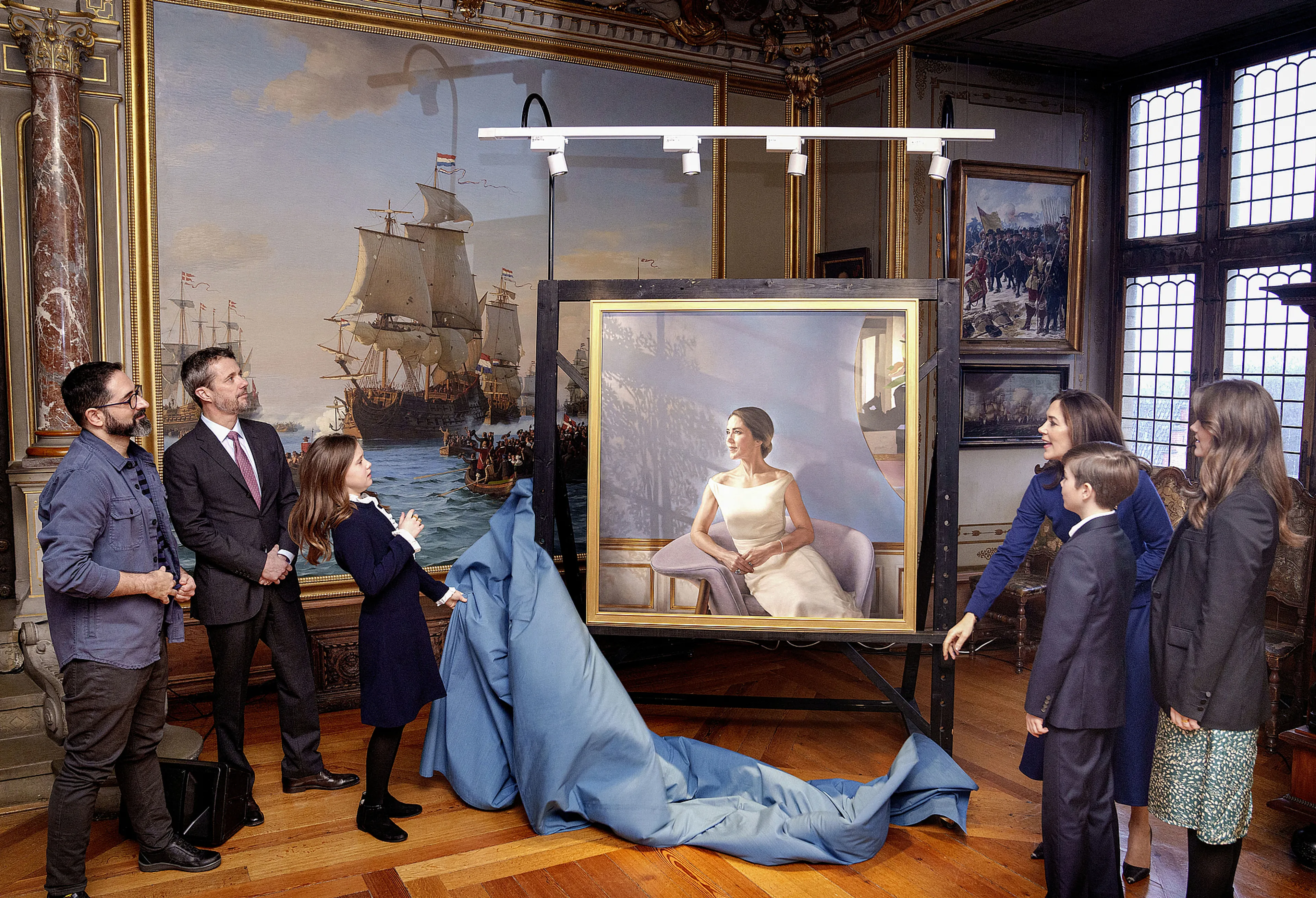 De Deense kroonprinses Mary heeft donderdag een nieuw portret van zichzelf onthuld in Frederiksborg Slot. Ze kreeg daarbij hulp van haar echtgenoot kroonprins Frederik en haar drie jongste kinderen prinses Isabella, prins Vincent en prinses Josephine.