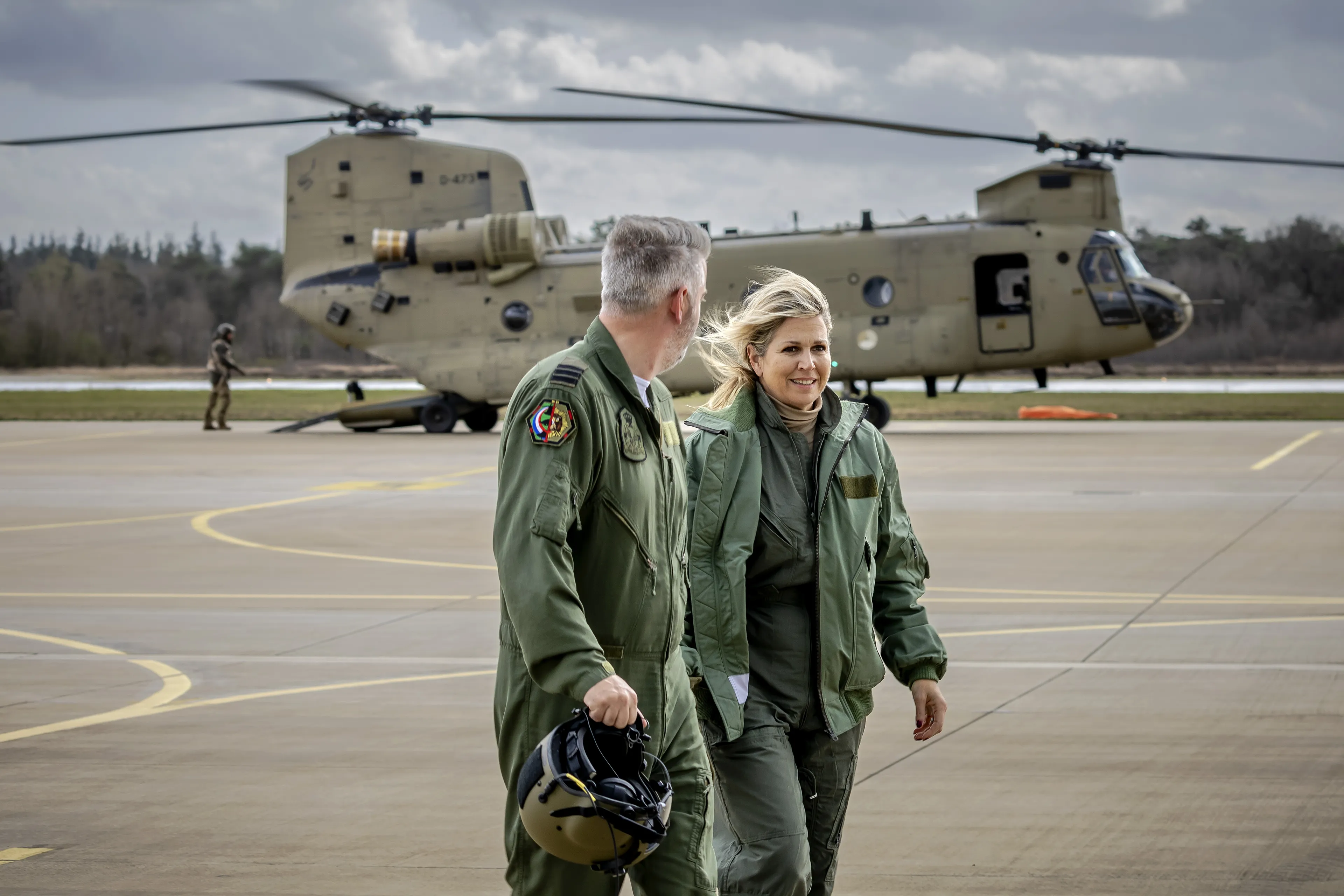 In maart dit jaar trekt koningin Máxima wel een héle stoere outfit uit de kast voor een net zo stoer werkbezoek. Ze mag namelijk meevliegen met een Chinook-helikopter van de Koninklijke Luchtmacht. Ze doet mee aan een oefening van de Fire Bucket Operation voor het blussen van branden door het Defensie Helikopter Commando (DHC). Een fantastische ervaring, zo zegt ze na afloop. Tom Cruise is er niks bij!