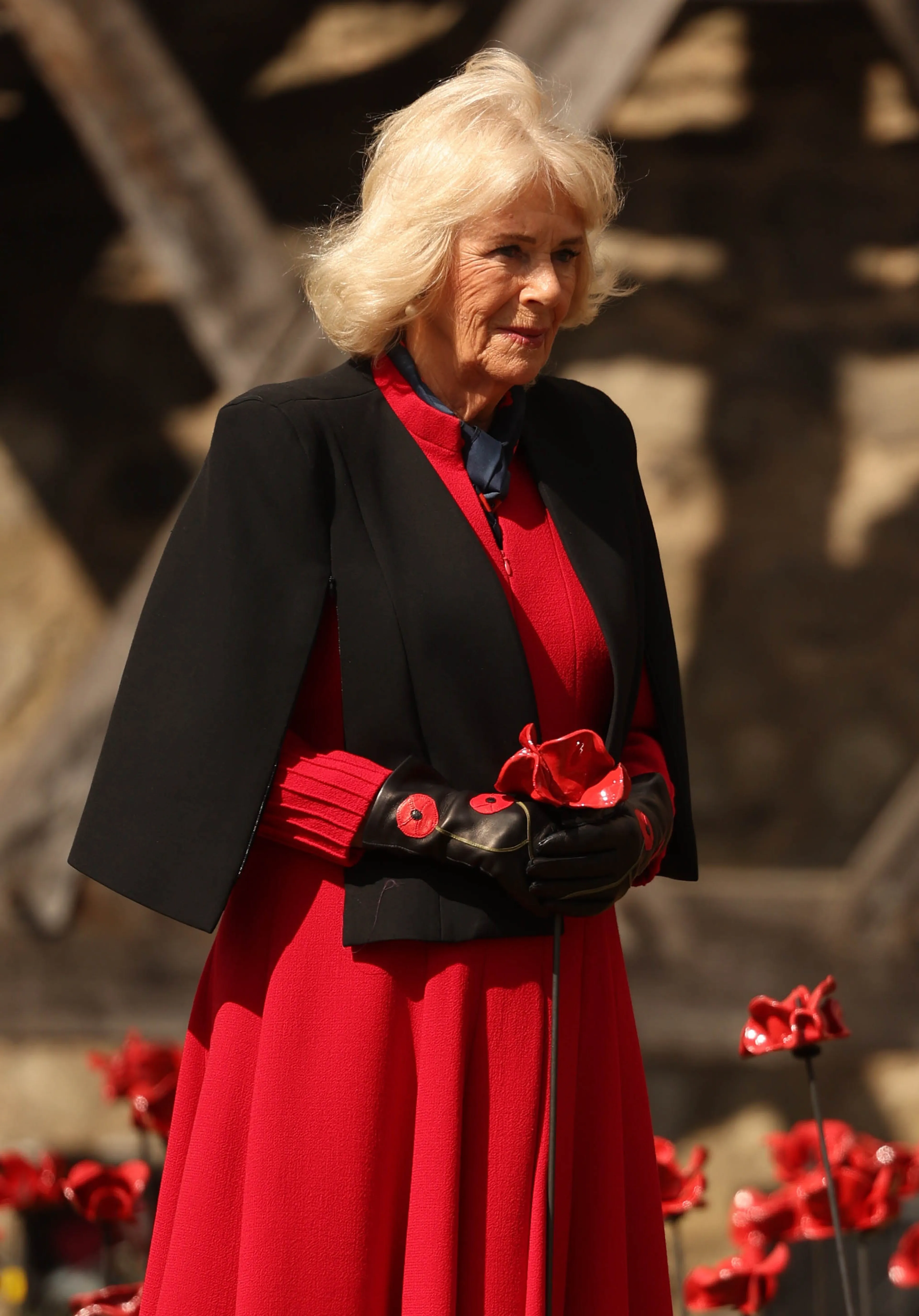De rode klaproos heeft een bijzondere betekenis in het Verenigd Koninkrijk. De bloem staat namelijk symbool voor zowel herdenking als hoop op een vreedzame toekomst. Het is dan ook niet zonder reden dat koningin Camilla bij een tentoonstelling van keramische klaprozen om het einde van de Tweede Wereldoorlog tachtig jaar geleden te herdenken, voor een accessoire met deze rode bloem kiest. Op haar zwarte leren handschoen is het kenmerkende symbool geborduurd.