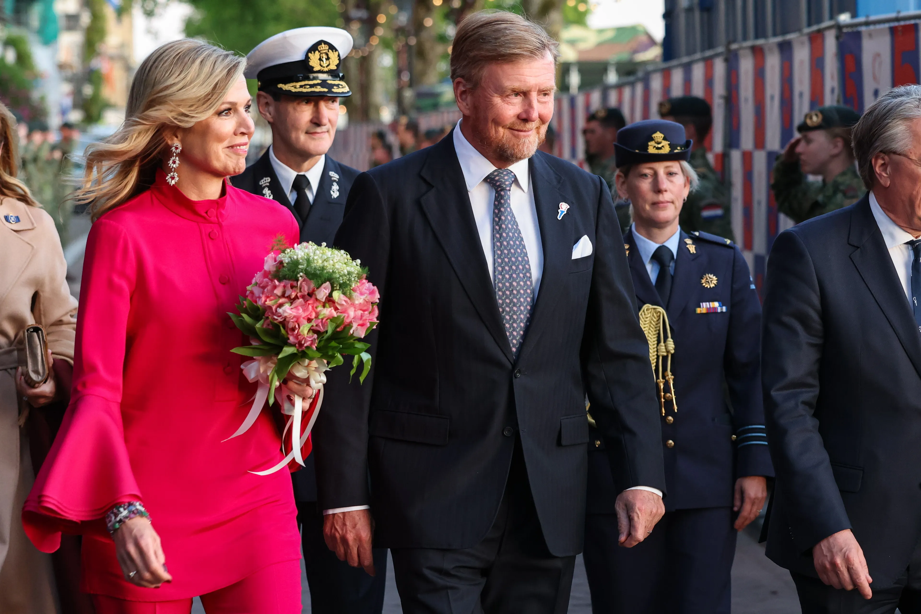Bloemen dienen tijdens deze lente ook als accessoires. Koningin Máxima heeft zo'n exemplaar in haar juwelencollectie liggen. De robijnen oorbellen in de vorm van bloemen kan ze op drie verschillende manieren dragen. Voor het 5 mei-concert kiest ze voor de meest uitgebreide versie met drie bloemen.