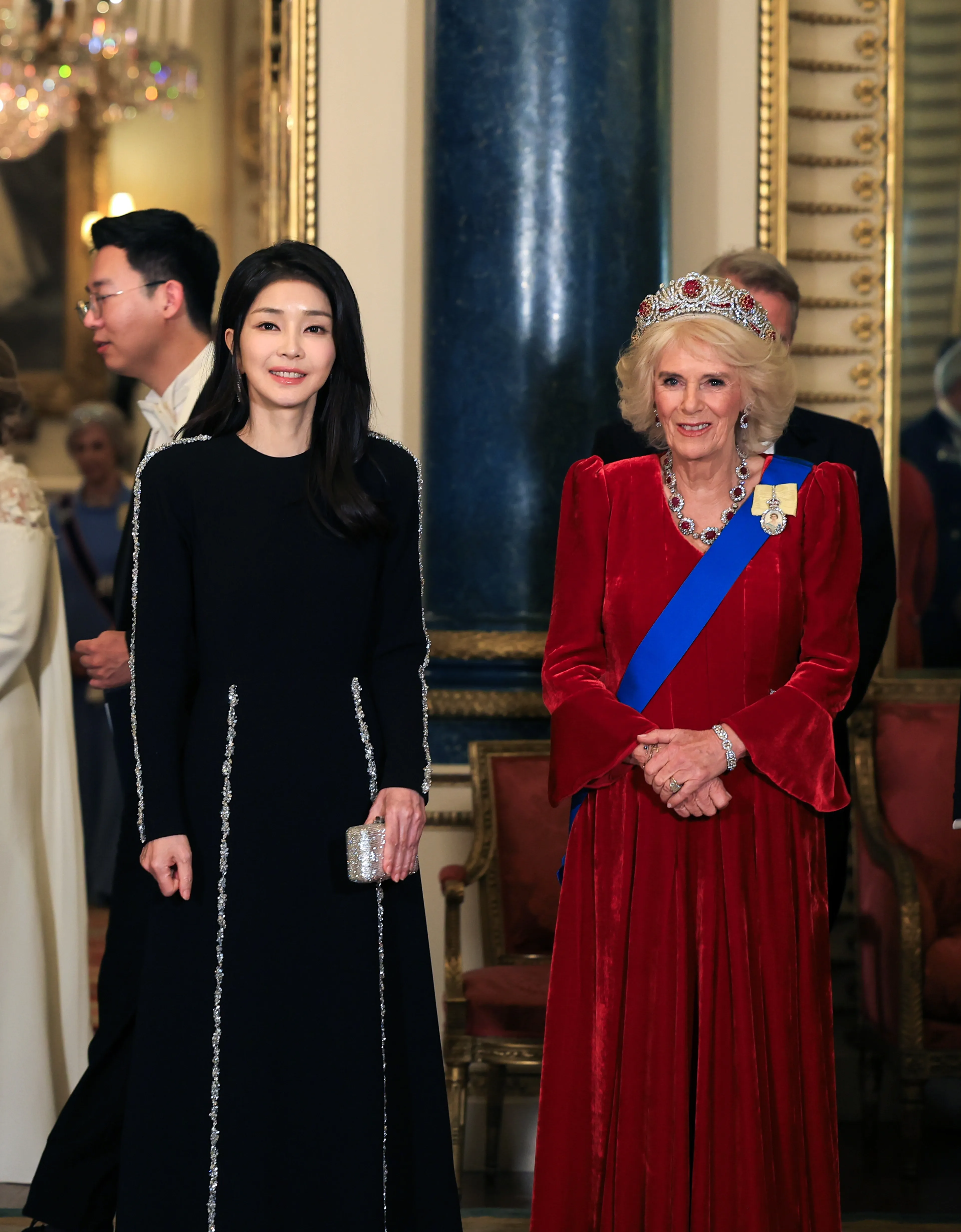 Koning Charles erfde het robijnen juweel na het overlijden van koningin Elizabeth in 2022. Een jaar later maakte koningin Camilla haar debuut met Burmese Ruby Tiara tijdens het staatsbanket waar het Zuid-Koreaanse presidentiële paar te gast was. Camilla dook vorig jaar wederom tijdens een staatsbanket op met het diadeem van haar schoonmoeder.