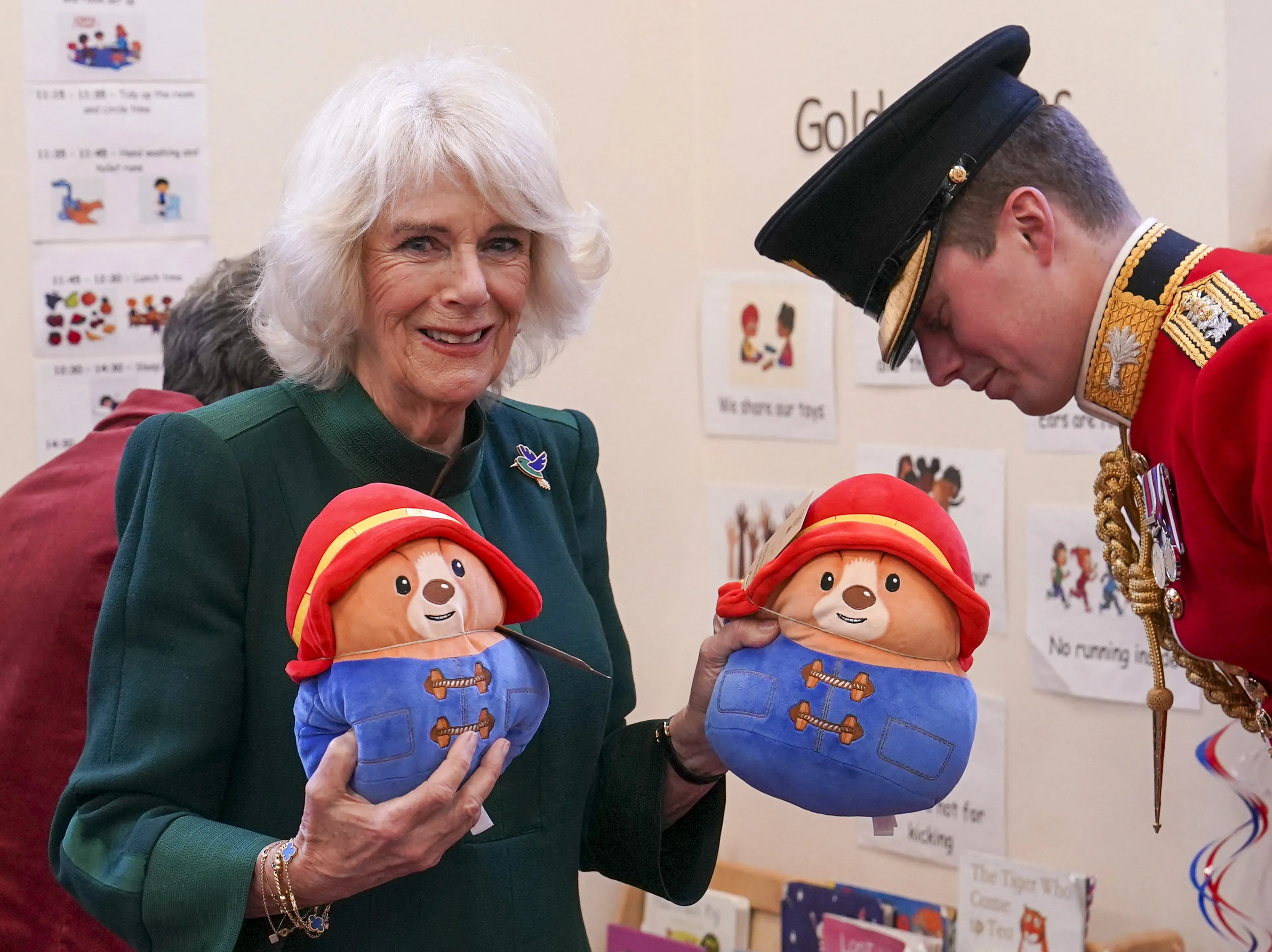 Camilla brengt Paddington-beertjes naar kinderen in nood