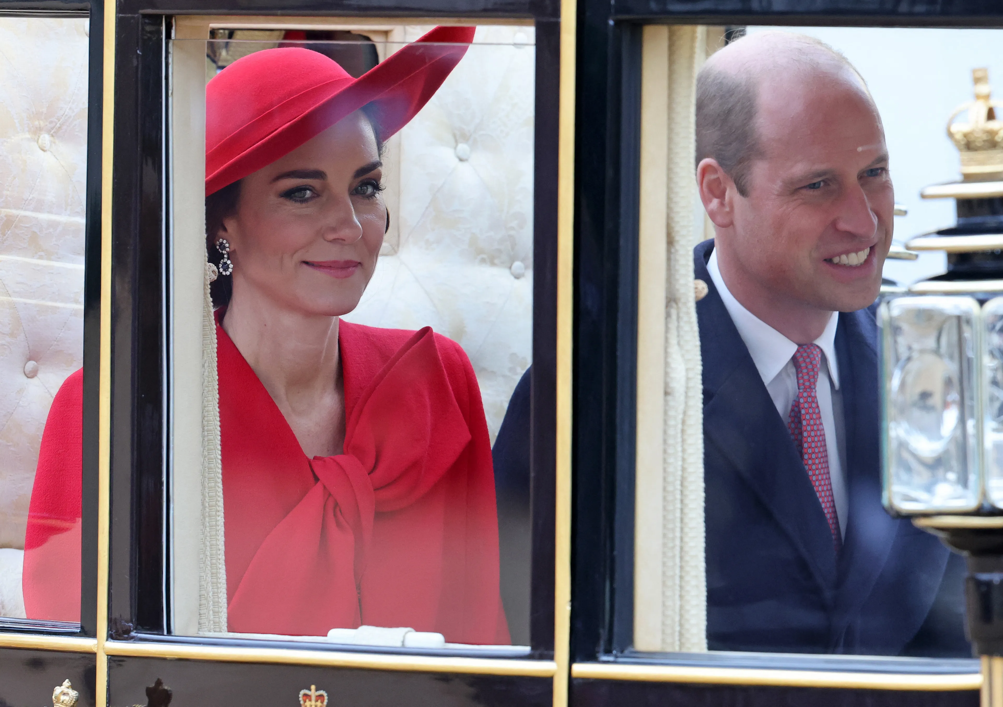 Catherine, de prinses van Wales, koos op de eerste dag van het staatsbezoek voor een geheel rode outfit. De nieuwe kleding is een ontwerp van Catherine Walker.