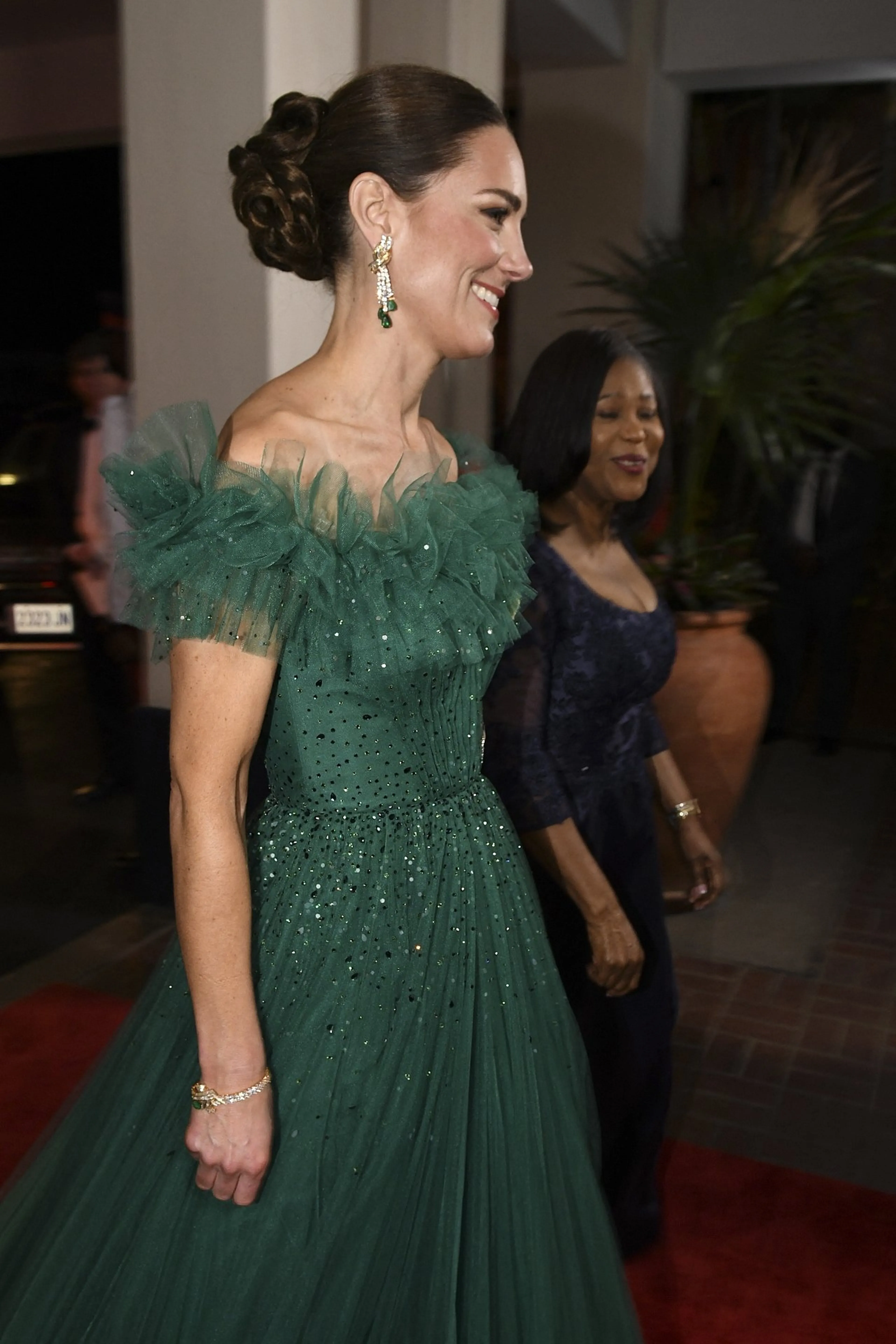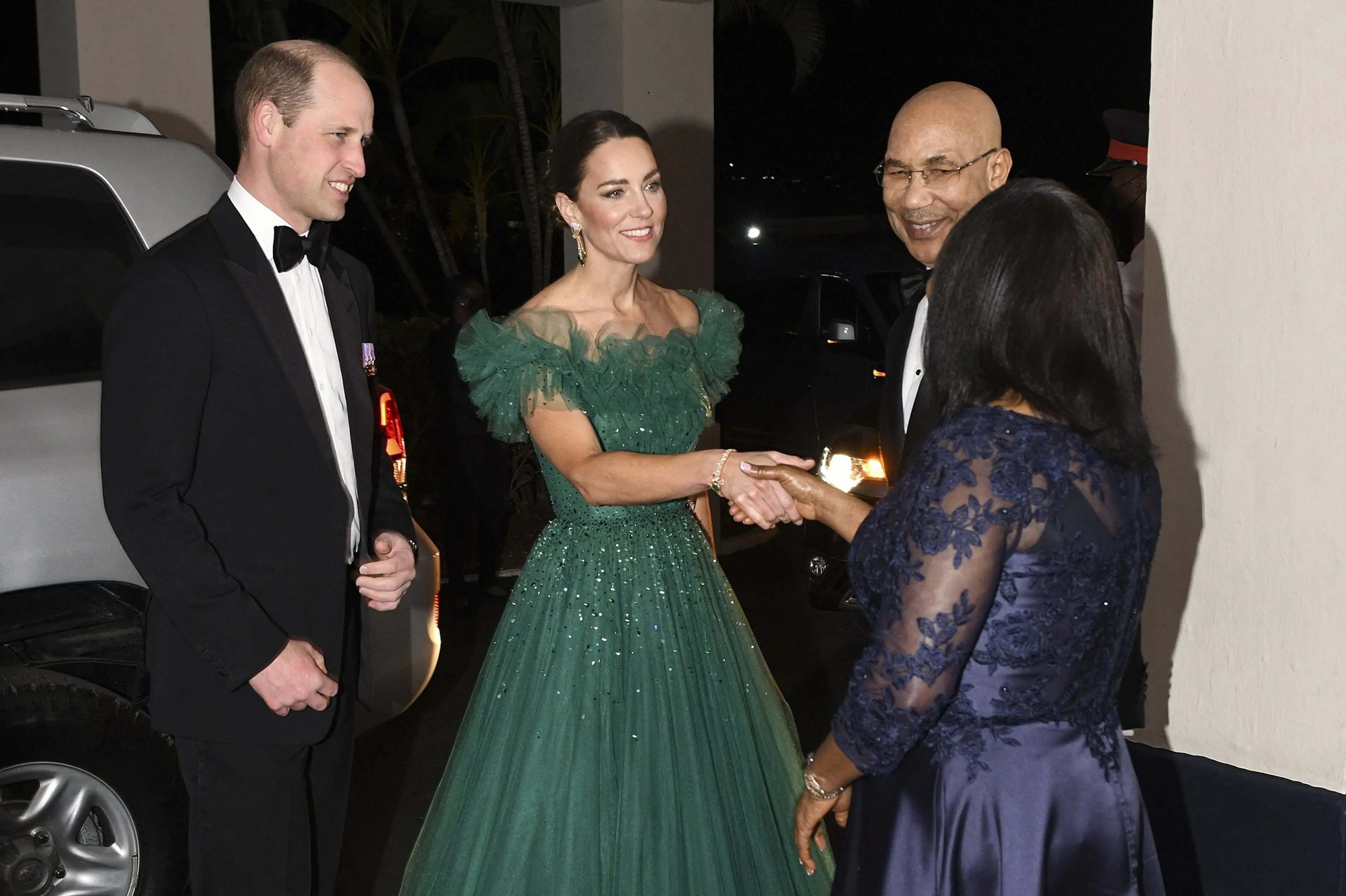 Kijk! Catherine straalt in groene avondjurk op Jamaica