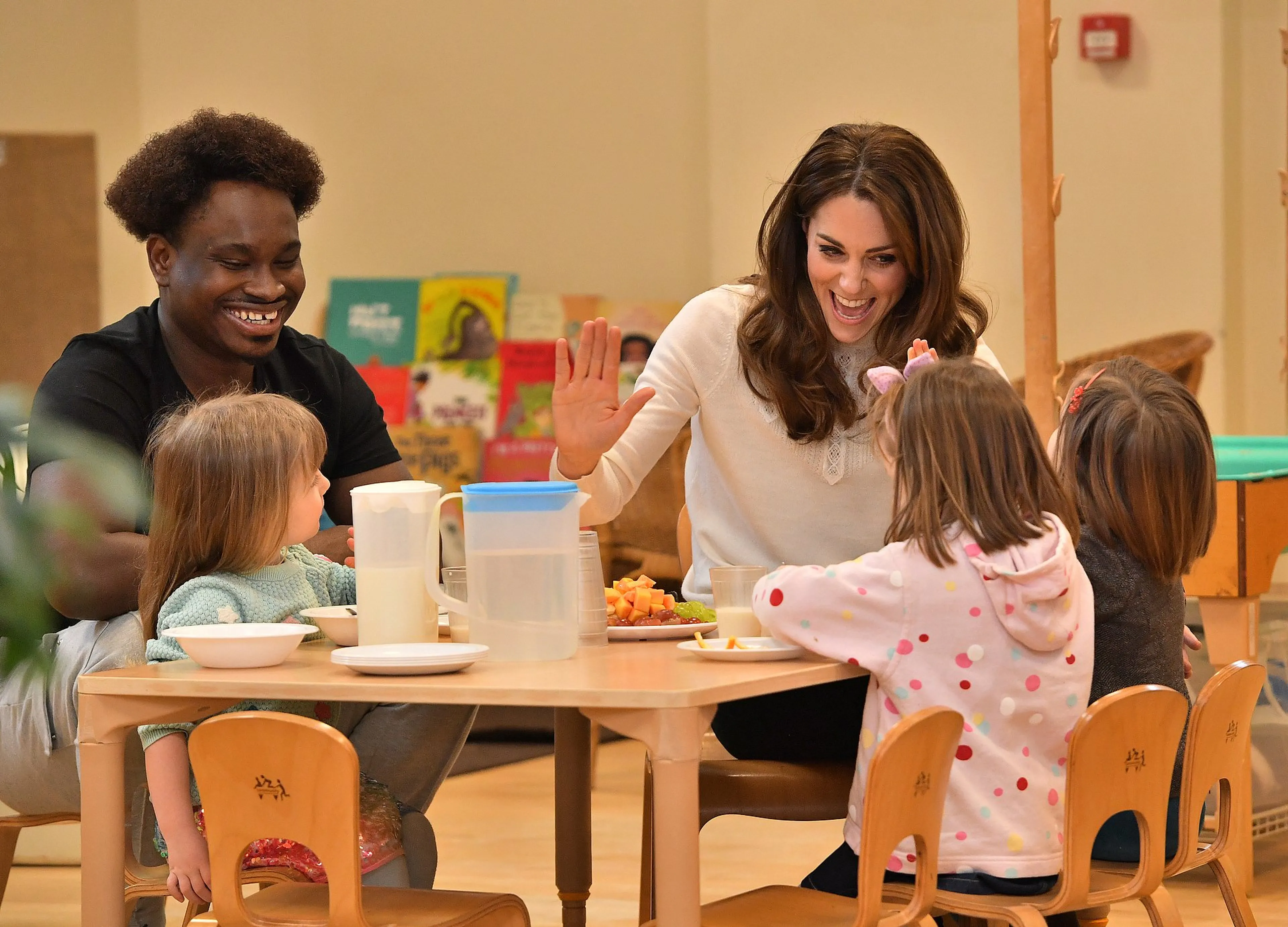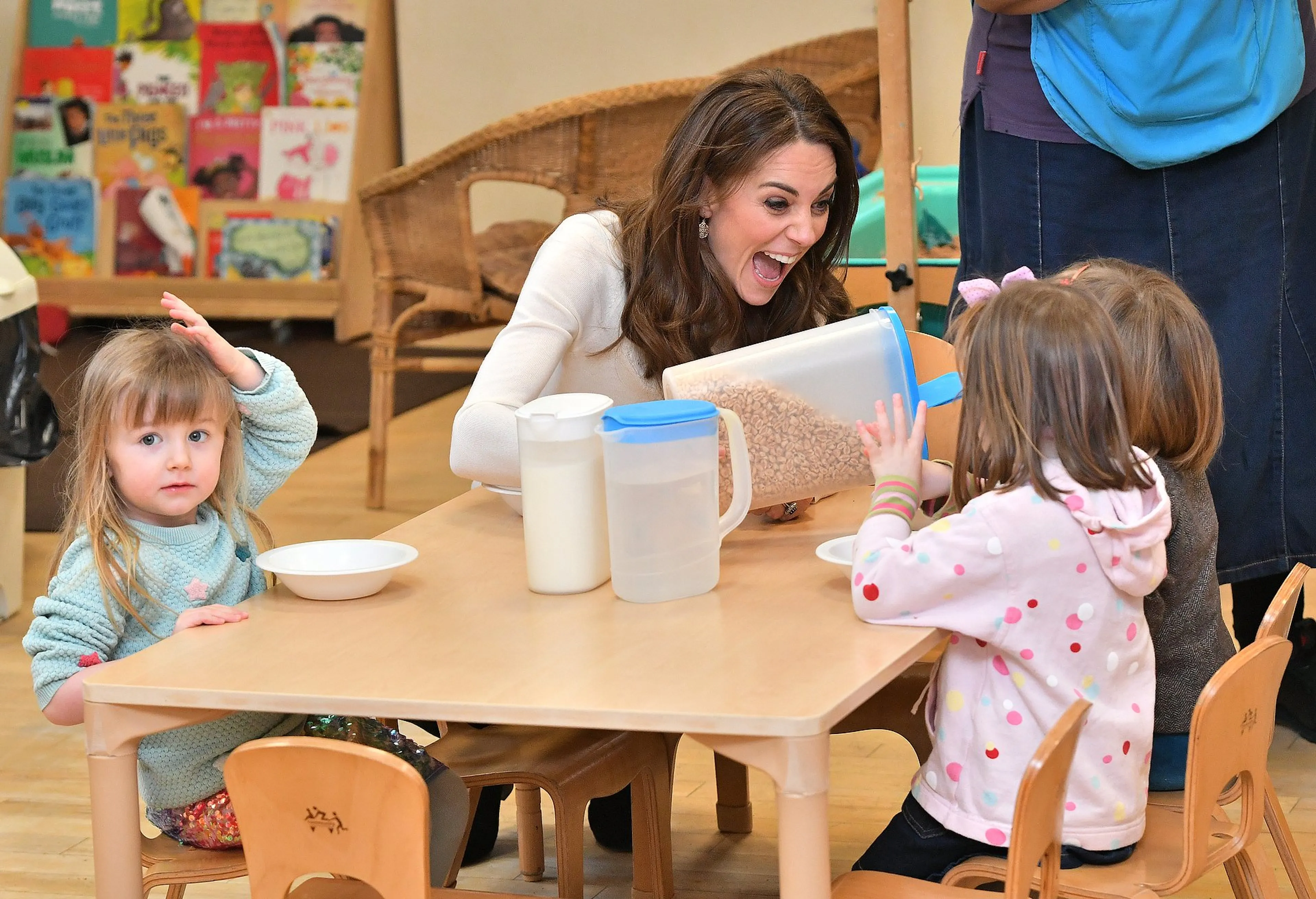 Catherine ging langs om onder meer te praten over het belang van een goed ontbijt en de invloed die dat kan hebben op de ontwikkeling van jonge kinderen. Ook sprak de hertogin over haar vorige week gelanceerde initiatief 5 Big Questions. Dat is een enquête waarmee ideeën worden verzameld over het opvoeden van kinderen. Met die enquête moet een basis worden gelegd voor de volgende generatie.