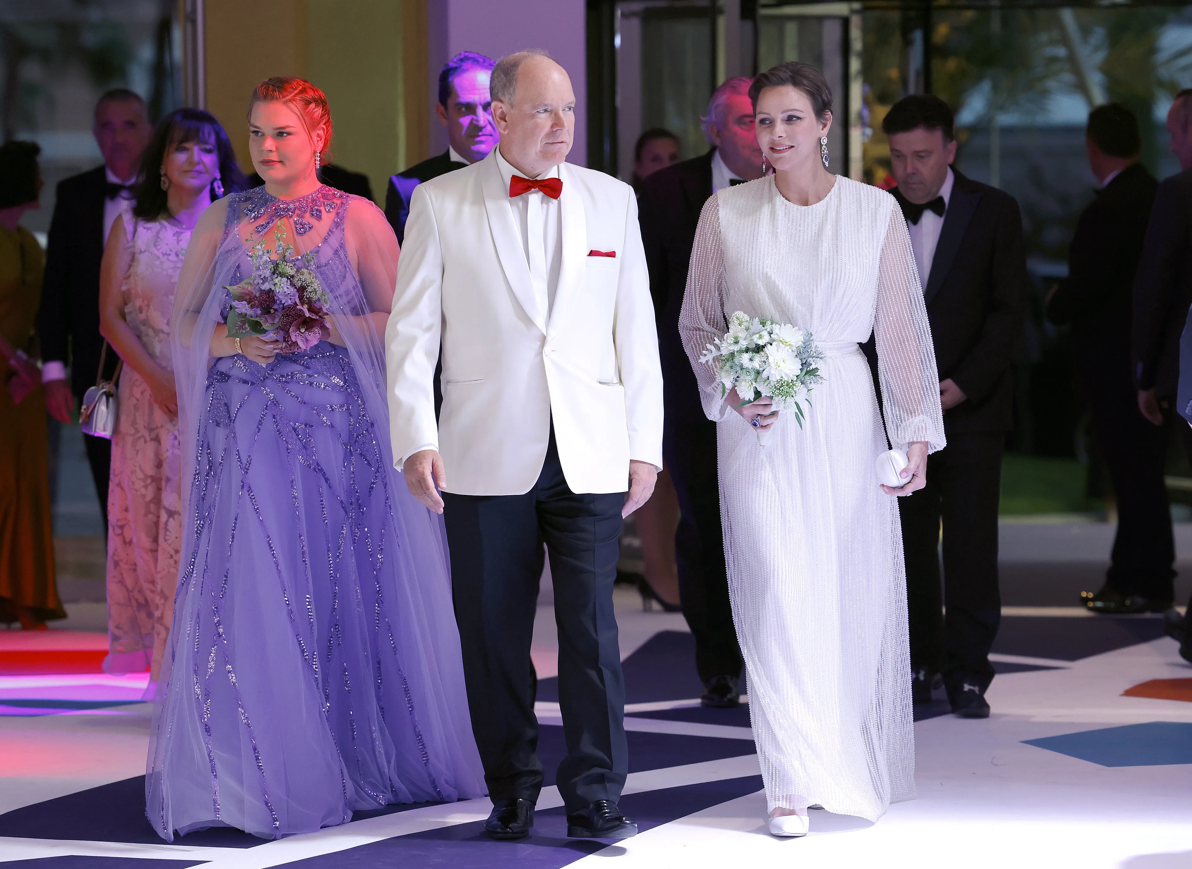 Samen met prins Albert en hun nichtje Camille Gottlieb was ze bij een gala