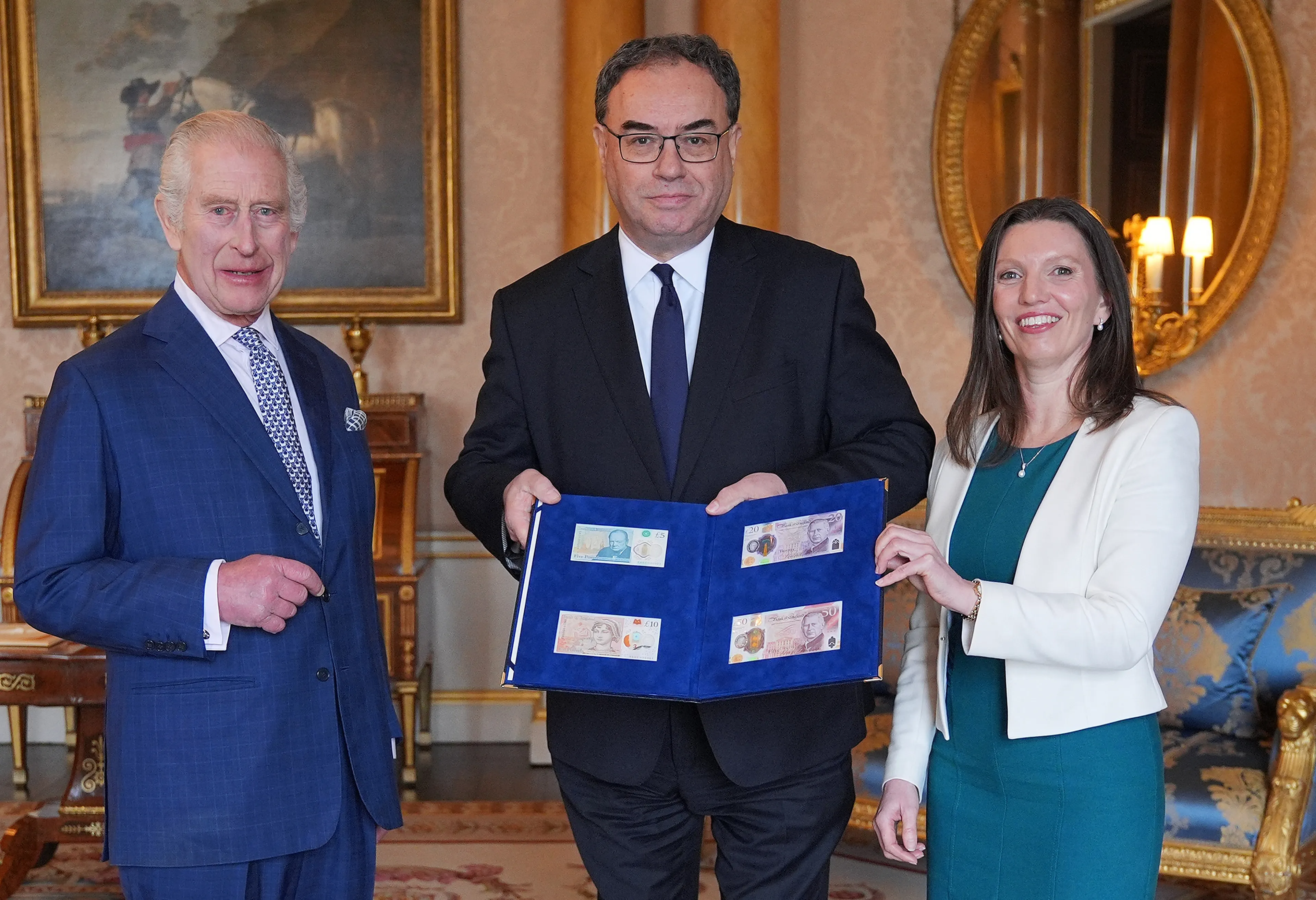 Begin april ontving koning Charles op Buckingham Palace al de eerste biljetten met zijn gezicht erop van de gouverneur van de Bank of England. Hij inspecteerde toen de bankbiljetten van 5, 10, 20 en 50 pond. Hoewel Charles het portret van zijn moeder op de geldbriefjes vervangt, blijven zowel de biljetten van hem als van koningin Elizabeth een wettig betaalmiddel in Groot-Brittanië.