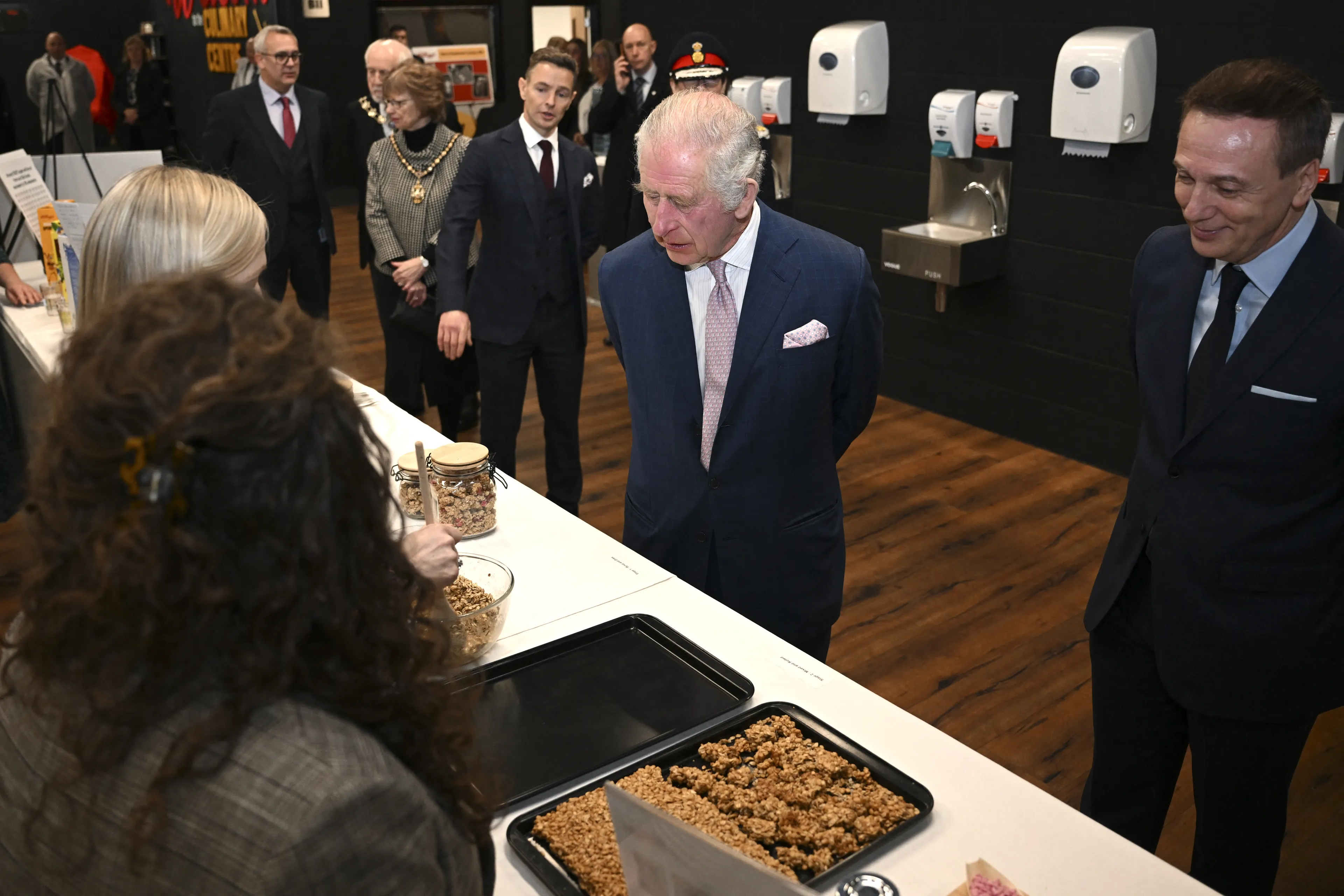 Charles kwam aan op Manchester Victoria Station, waar hij werd verwelkomd door enkele hoogwaardigheidsbekleders. De koning bezocht vrijdag onder meer de Kellog's-fabriek in Manchester, de grootste cornflakes-fabriek ter wereld.