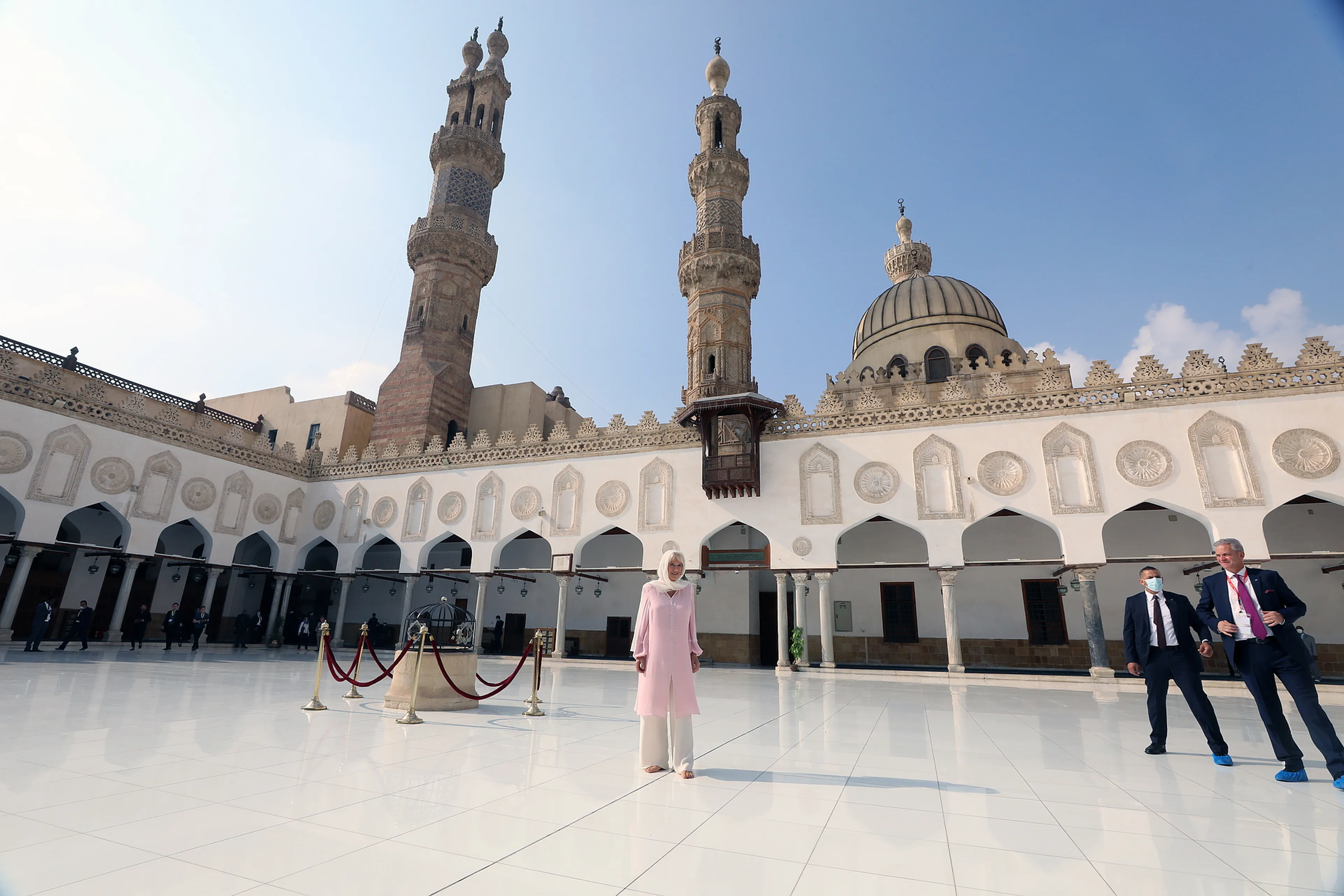 In de Al Alzar-moskee in Caïro droeg Camilla, zoals gebruikelijk is daar, een witte sluier. Ze spraken met verschillende mensen over hoe Egypte omgaat met de klimaatcrisis en duurzaamheidsuitdagingen. Zo nam Camilla kort plaats op een stoel gemaakt van autobanden. Verder kregen Charles en Camilla uitleg over een organisatie die vrouwen leert om duurzame producten te maken, zoals kleding en tassen.