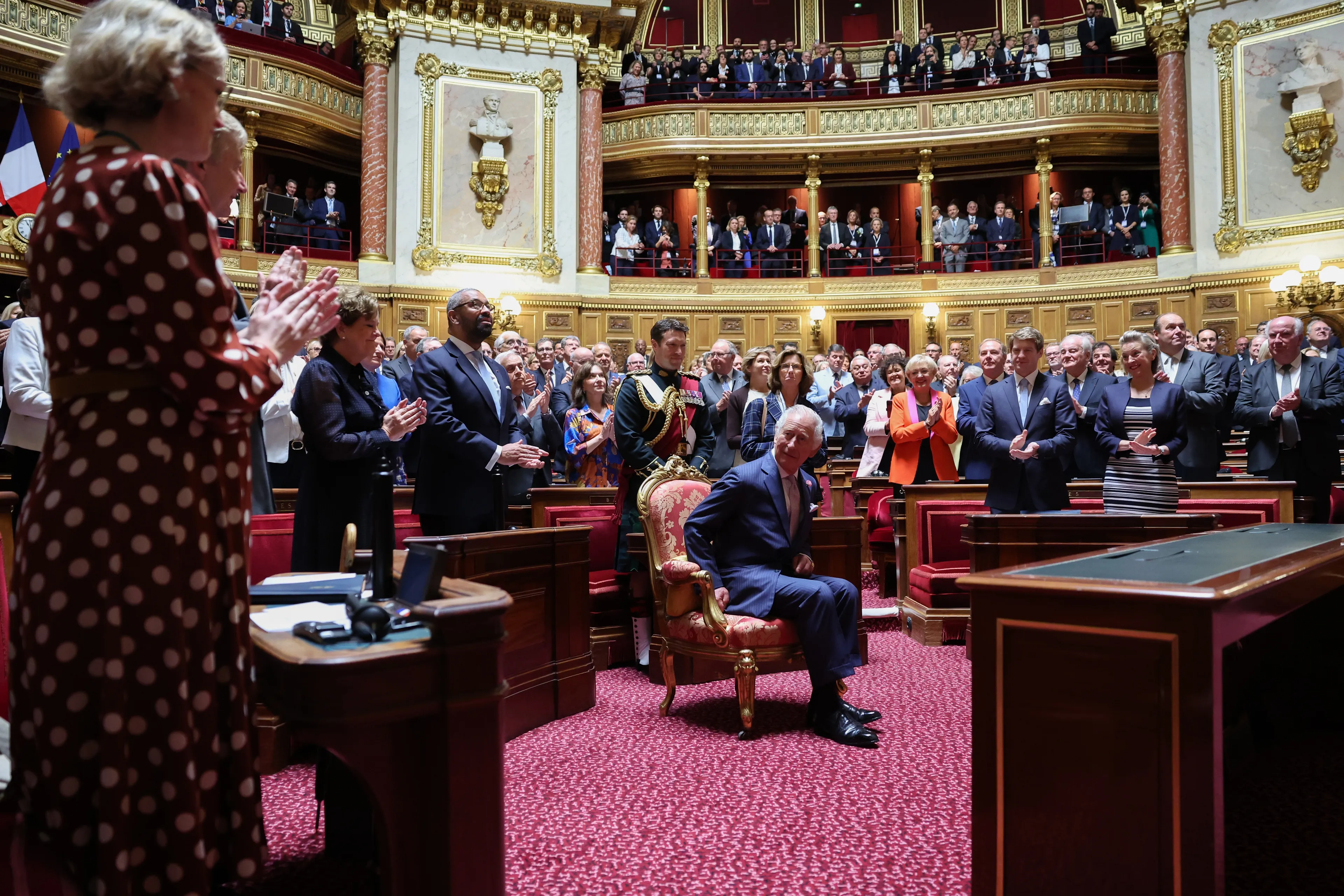 Op de tweede dag van het bezoek schrijft koning Charles geschiedenis en spreekt hij als eerste Britse vorst in het senaatsgebouw. In zijn toespraak benoemt hij opnieuw de goede vriendschap tussen Frankrijk en Groot-Brittannië. "Wij zullen altijd de meest directe bondgenoot en beste vriend van Frankrijk blijven." Ook vertelt hij over de vriendelijkheid van het land ten tijde van het overlijden van zijn moeder.