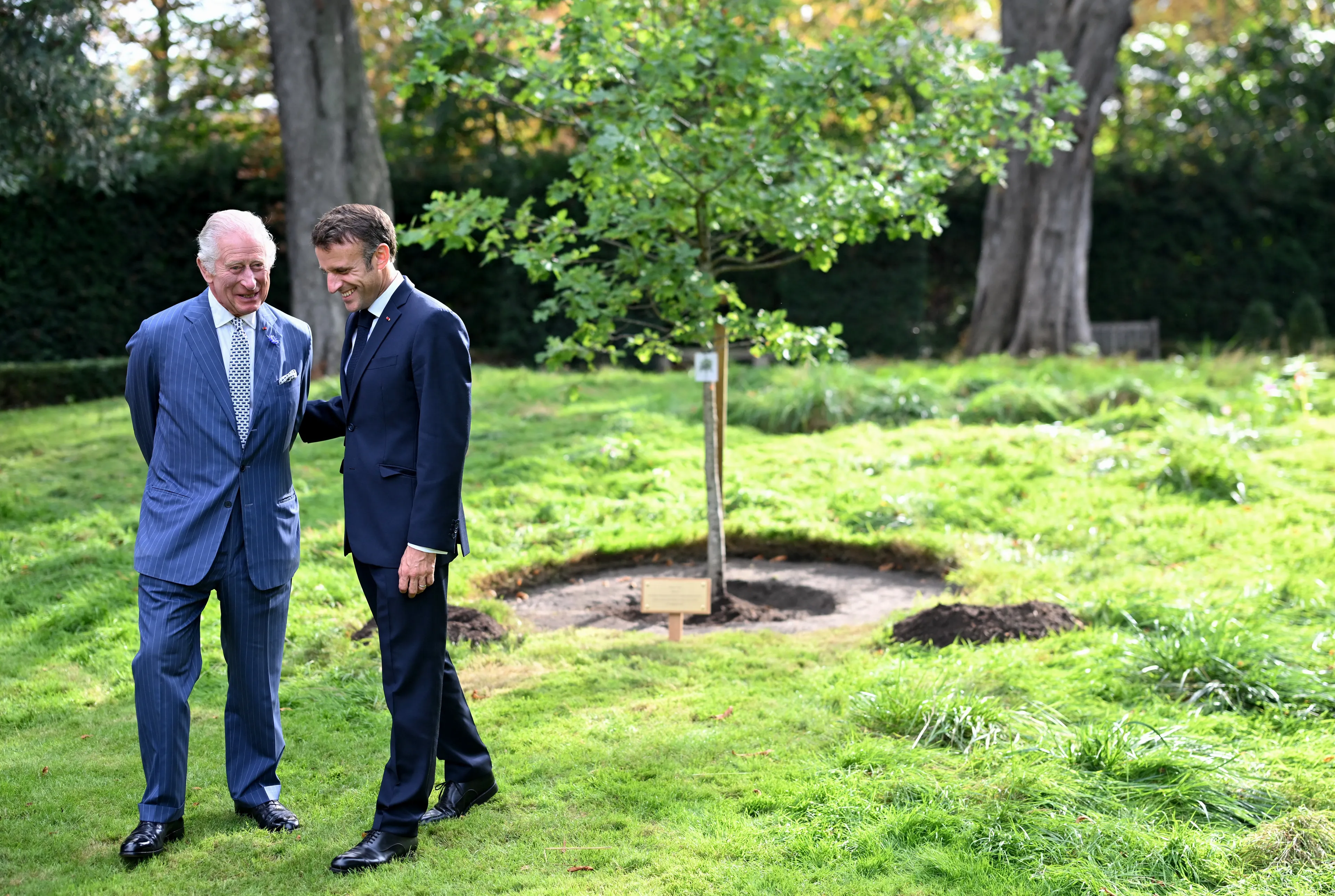 Charles en Macron gaan daarna naar de officiële residentie van de Britse ambassadeur en planten hier geheel volgens traditie een boom in de tuin. Daarmee treedt de koning in de voetsporen van zijn moeder, want koningin Elizabeth deed dit eerder ook tijdens bezoeken aan Frankrijk.