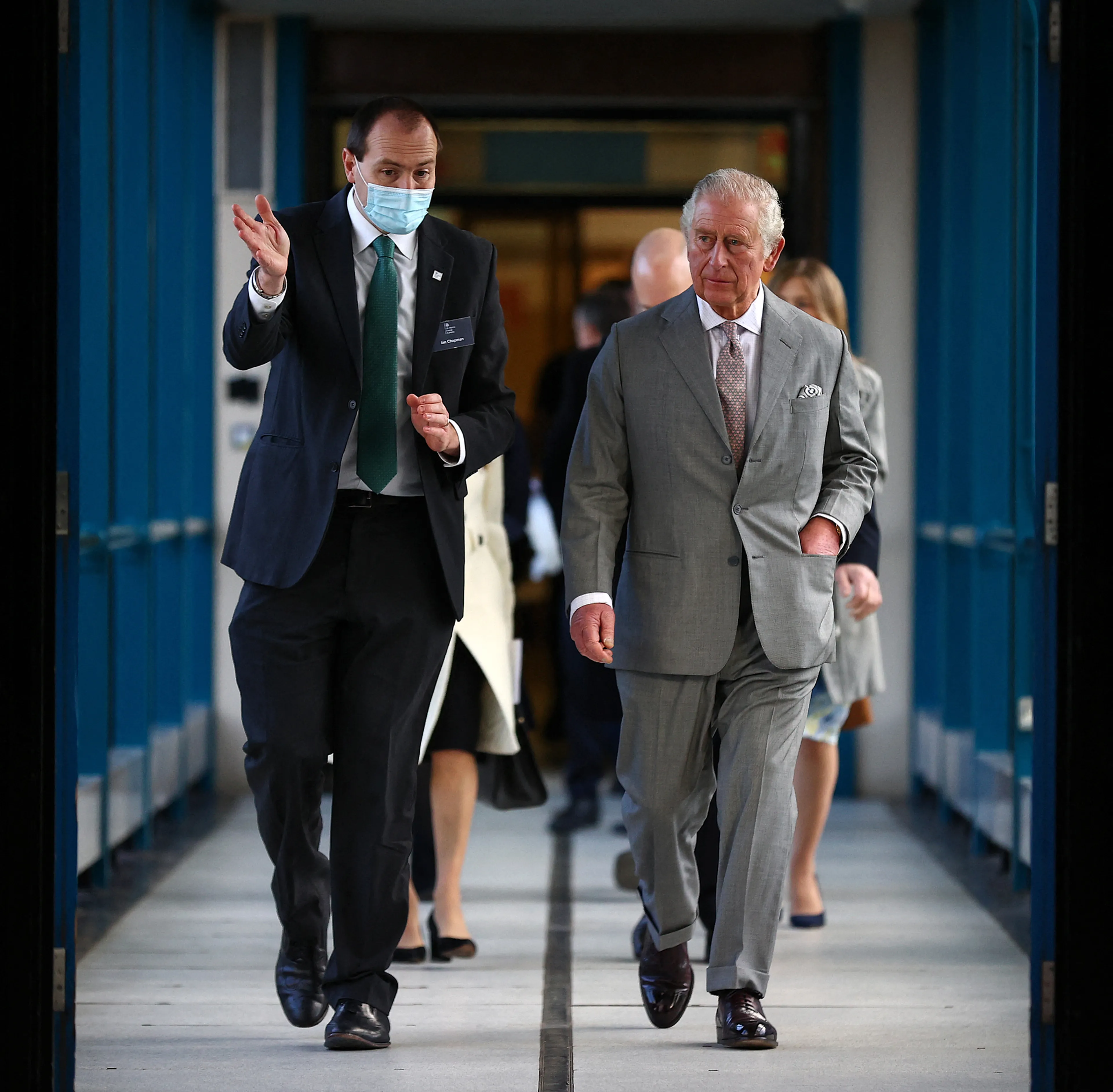 Op sociale media werden foto's van Charles in Harwell gedeeld. Te zien is onder meer hoe hij in gesprek ging met medewerkers van Astroscale. Het bedrijf ondersteunt overheden en bedrijven wereldwijd en moedigt hen aan om duurzaam gebruik te maken van de ruimte.