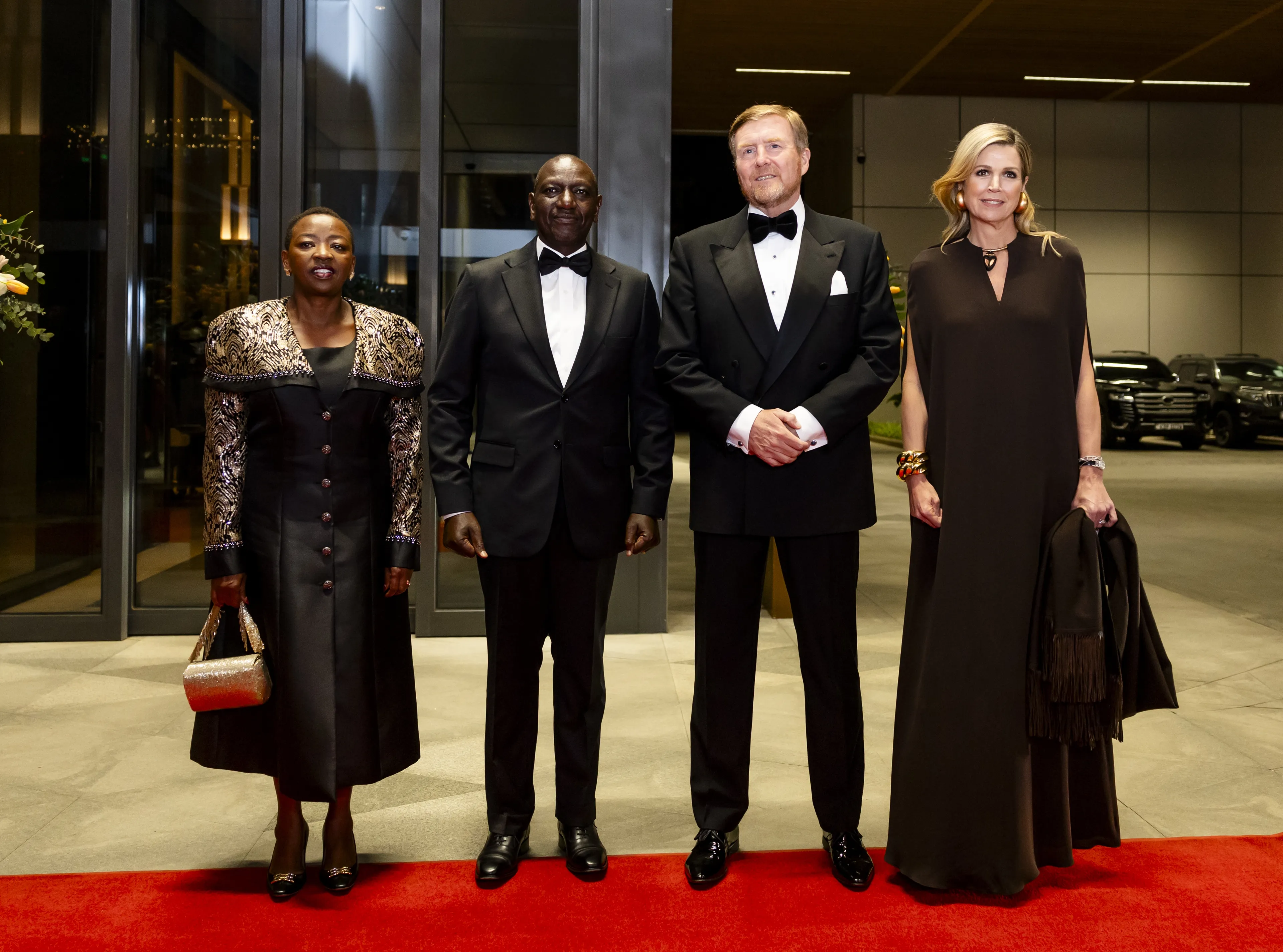 Deze tweede dag van het staatsbezoek wordt afgesloten met een contraprestatie. De locatie? Het Marriot Hotel in Nairobi. Koning Willem-Alexander draagt vanavond een smoking en naast hem geeft koningin Máxima een op het oog simpele avondjurk een moderne twist. Kijk maar mee.