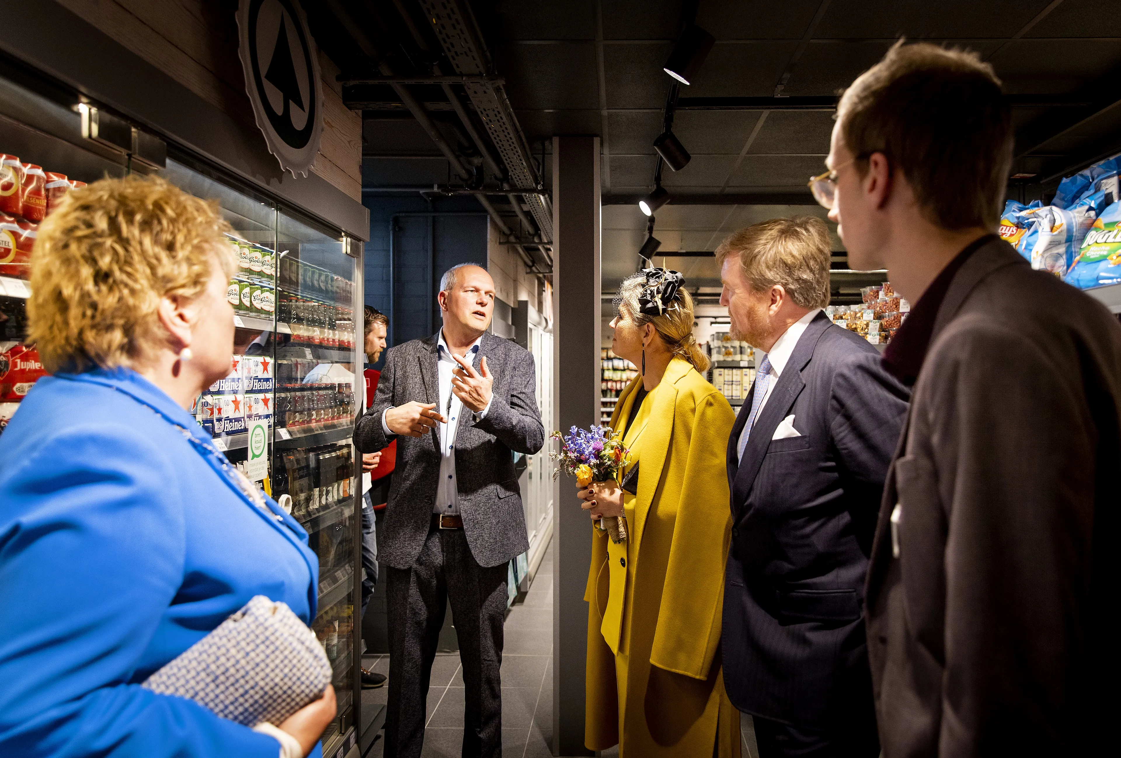 Ze kregen er een rondleiding van het echtpaar Brunekreeft, de eigenaren van de supermarkt. Ook hun zoon Sjoerd, die de zaak hoopt over te nemen, was erbij. Na het gesprek met deze plaatselijke ondernemersfamilie verlieten de koninklijke gasten het eiland.