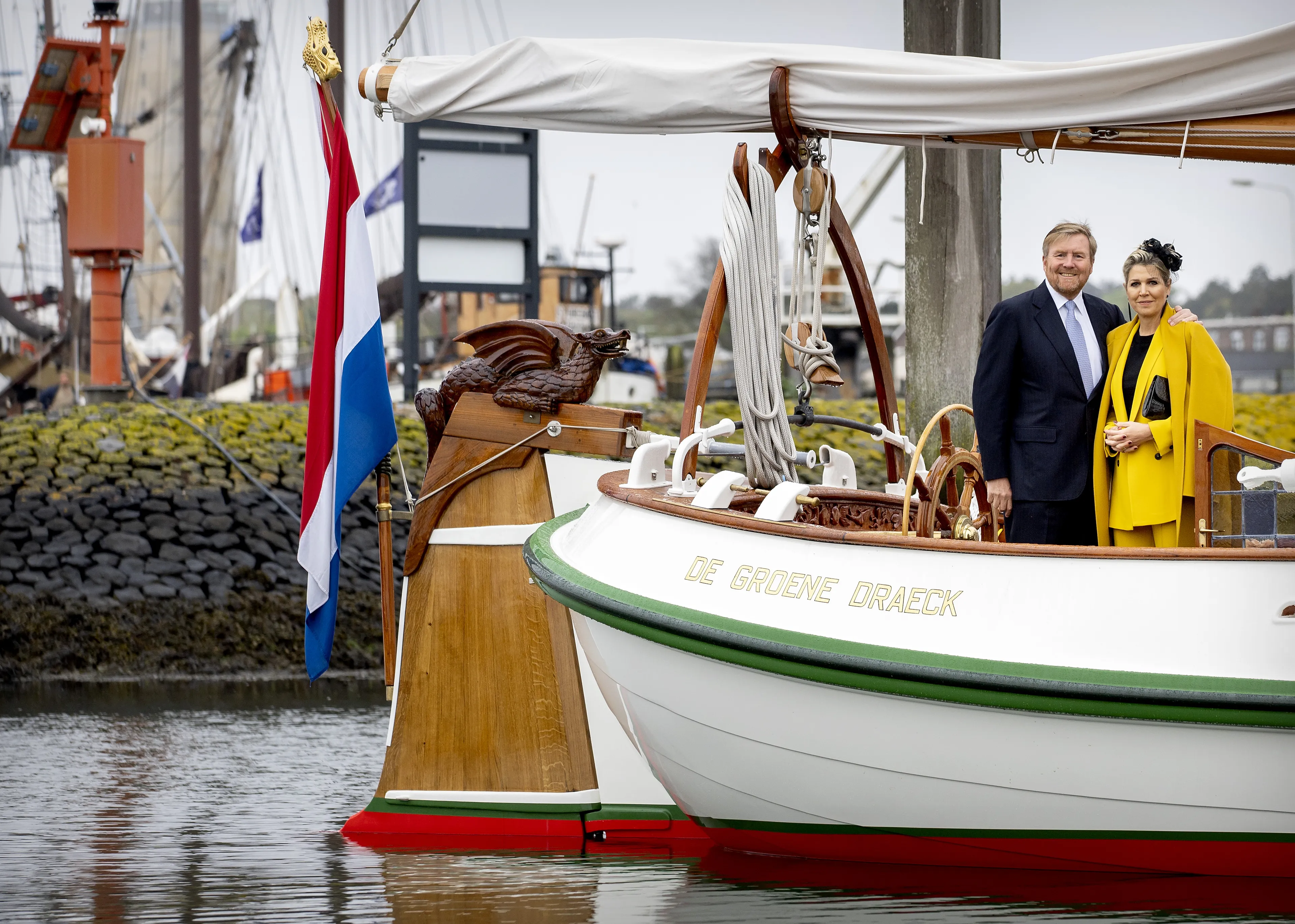 De koning en de koningin sliepen vannacht op een voor hun bekend plekje. Ze hebben de nacht van dinsdag op woensdag op Terschelling doorgebracht op De Groene Draeck, de boot van prinses Beatrix. Het paar kwam het jacht woensdagochtend af om aan de dag te beginnen. De boot trok dinsdagavond veel bekijks van mensen die ook een boot in de haven hebben liggen.