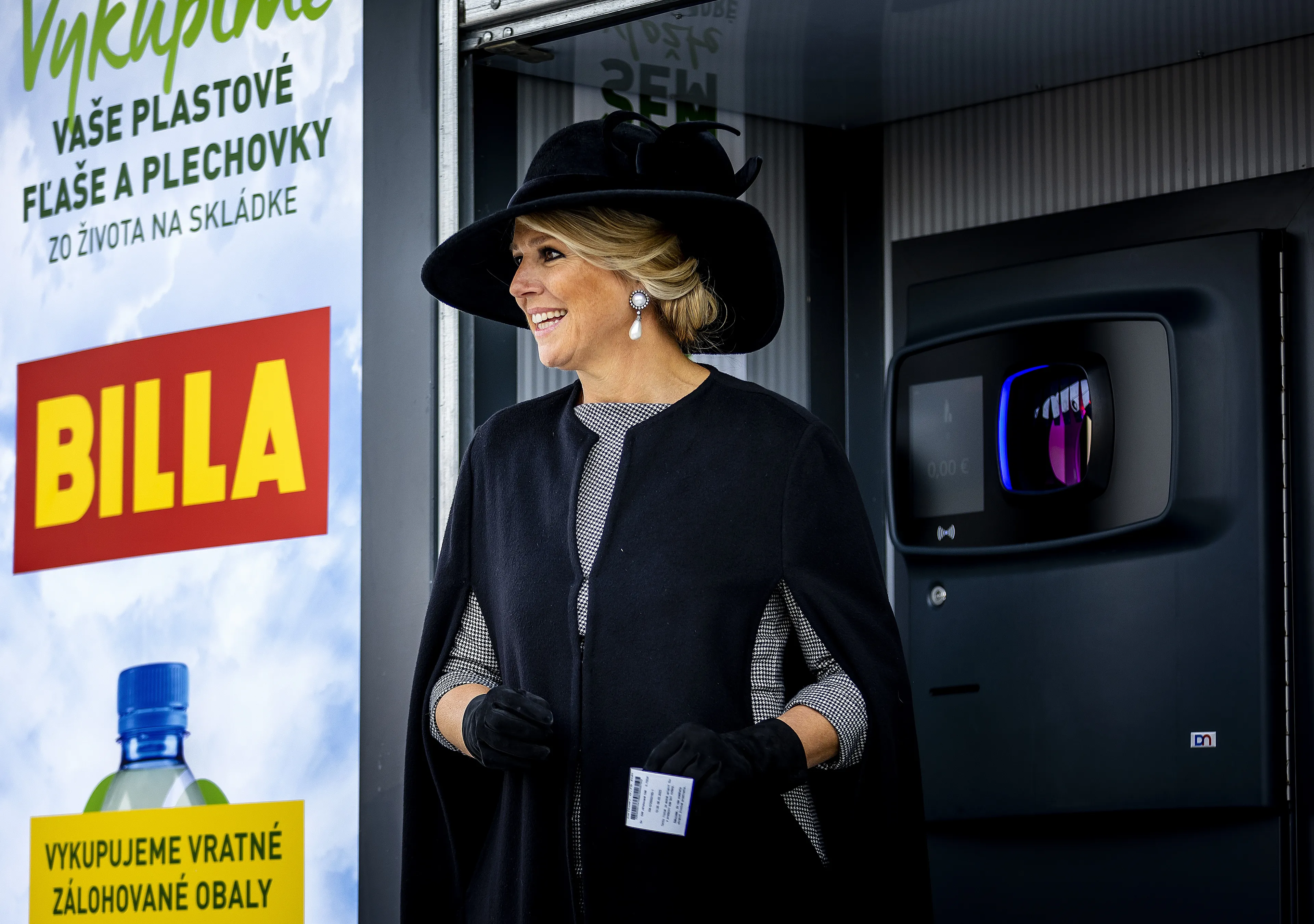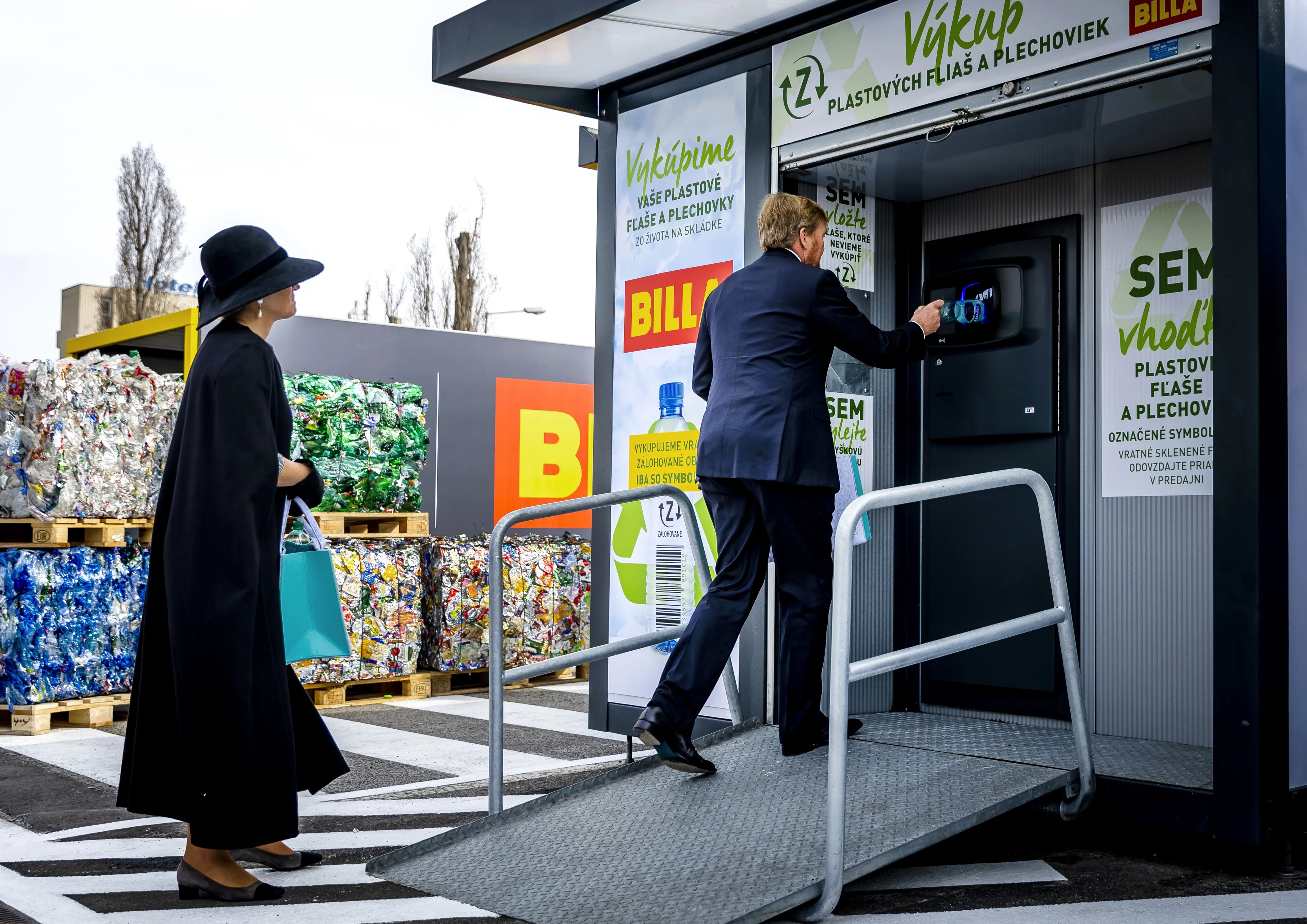 Vervolgens kreeg het koningspaar een uitleg van het statiegeldsysteem in Slowakije bij een supermarkt, waar tientallen mensen het koningspaar stonden op te wachten. Sommigen hadden Nederlandse vlaggen of bosjes bloemen bij zich. De koning en koningin kregen bij aankomst ieder een tasje met lege flessen, die zij in het apparaat moesten gooien. Het apparaat werkte niet meteen mee, maar na enige assistentie verdwenen de flessen in de machine en kregen de koning en koningin een bonnetje.