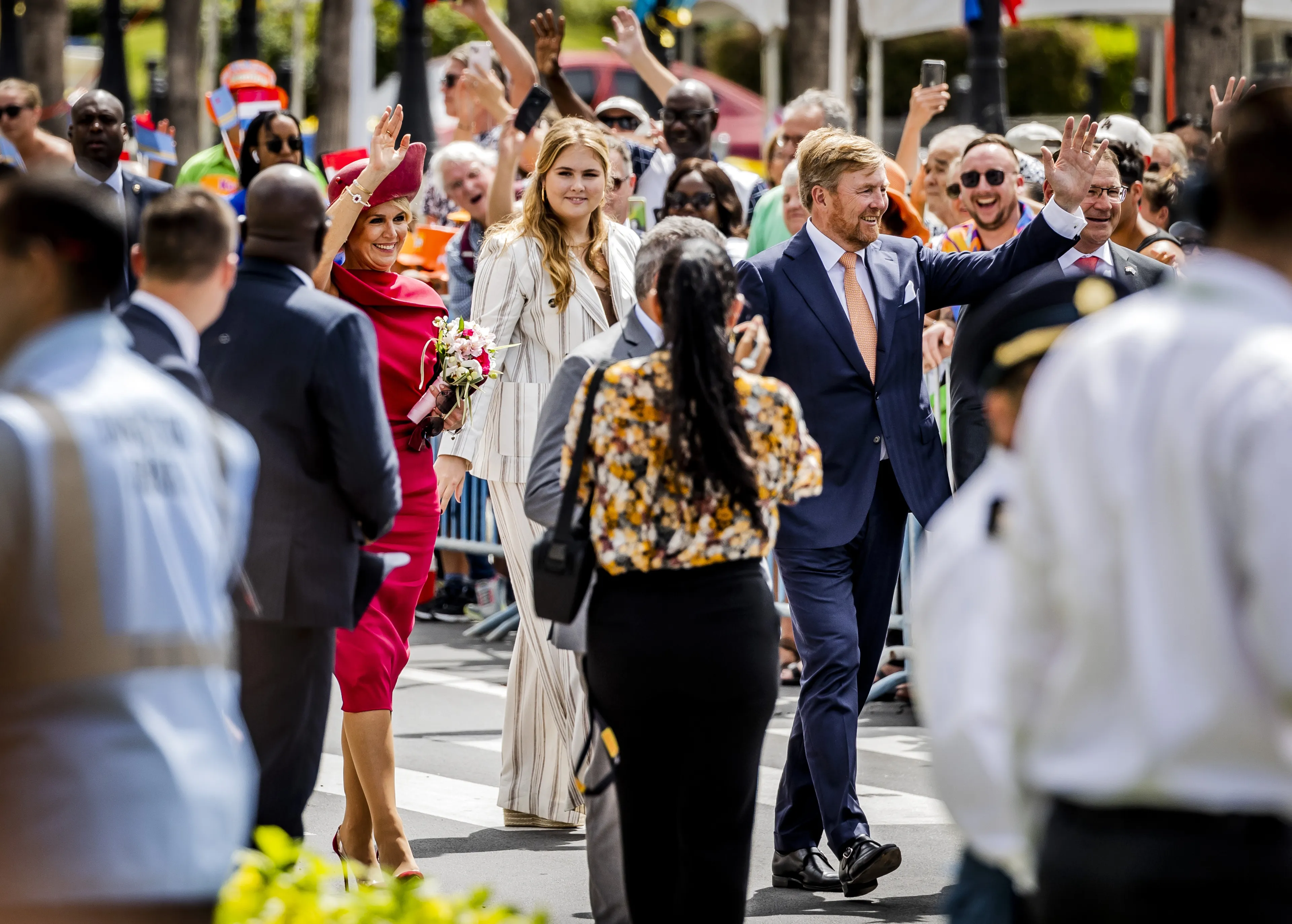 De Koning, Koningin Máxima en de Prinses van Oranje zijn maandagochtend aangekomen op Aruba. In Oranjestad vindt een welkomstceremonie plaats op het Wilhelminaplein. De tweede dag van het bezoek aan Caribisch Nederland staat in het teken van officiële ontmoetingen, kunst en cultuur op Aruba.