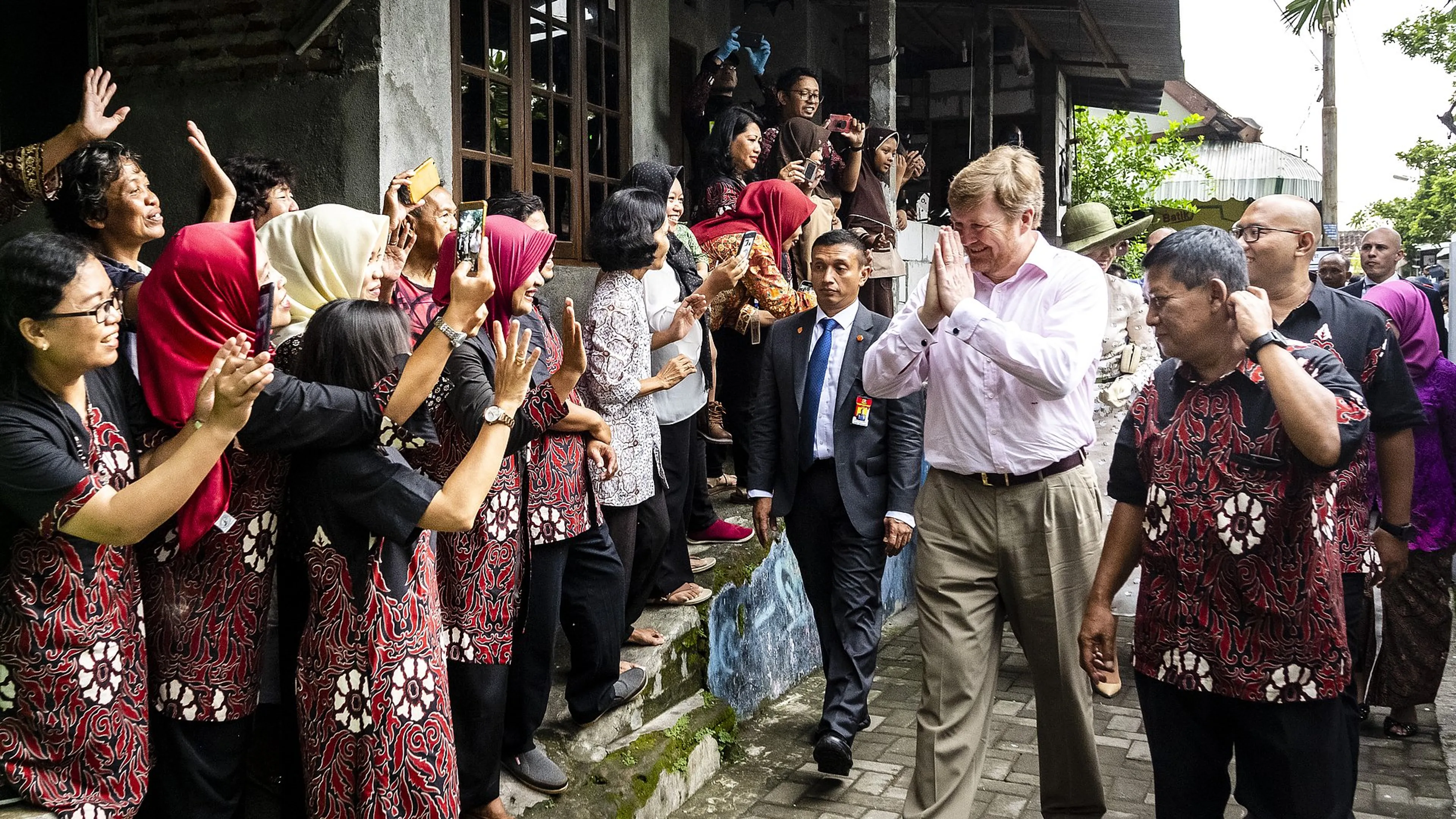 Willem-Alexander en Máxima, die in Jakarta voor vertrek in hotel Indonesia nog een ontmoeting hadden met vertegenwoordigers van het Nederlandse en Indonesische bedrijfsleven, wacht in de Keraton Nga Yogyakarta Hadiningrat een uitgebreide welkomstceremonie, compleet met traditionele gamelan muziek.