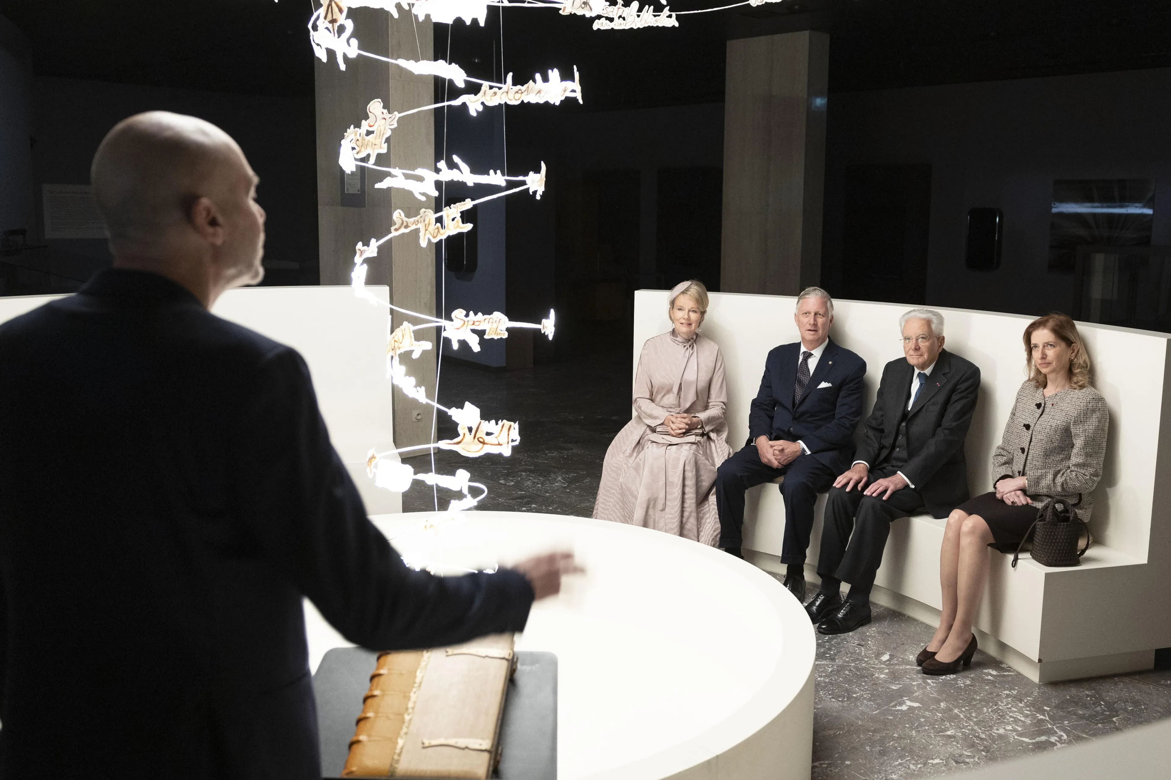In de avond had het koningspaar zich even omgekleed, want op het programma stond een contraprestatie. De Italiaanse president bood dinsdagavond een cultureel programma aan als blijk van dank voor de organisatie van het staatsbezoek. Ook prins Laurent, de broer van koning Filip, was bij de voorstelling in de Koninklijke Muntschouwburg in Brussel aanwezig.