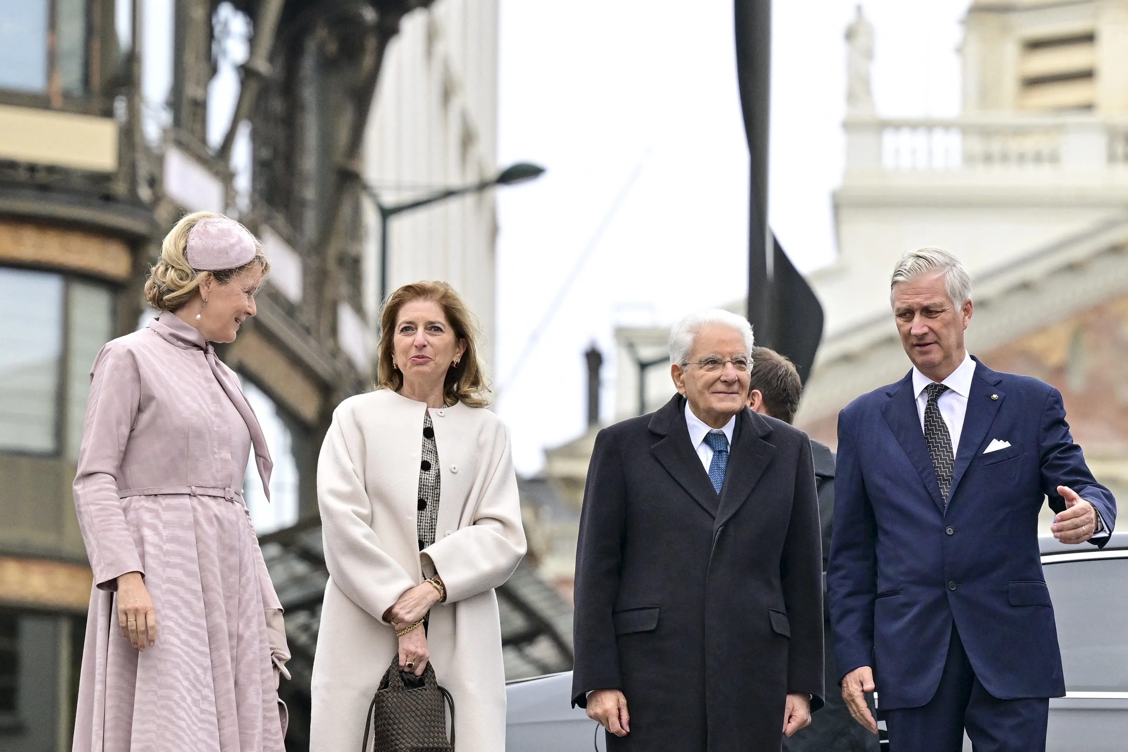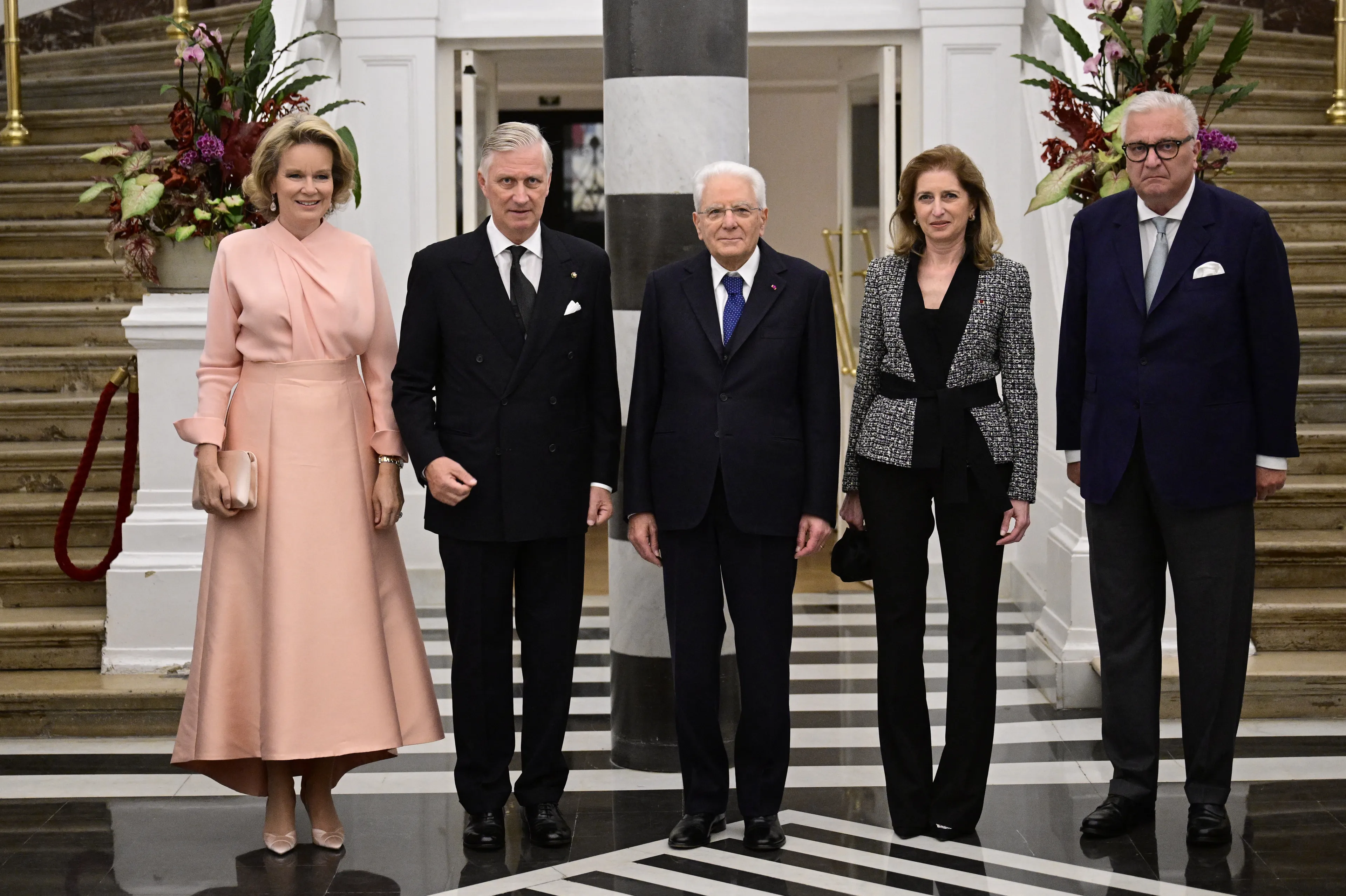 Voor de gelegenheid droeg koningin Mathilde een ontwerp van Belgische bodem. Namelijk een zalmroze set van Natan. Het staatsbezoek van Italië aan België duurt officieel nog tot en met woensdag, maar het Belgische koningspaar neemt niet deel aan de onderdelen die op de laatste dag op het programma staan.