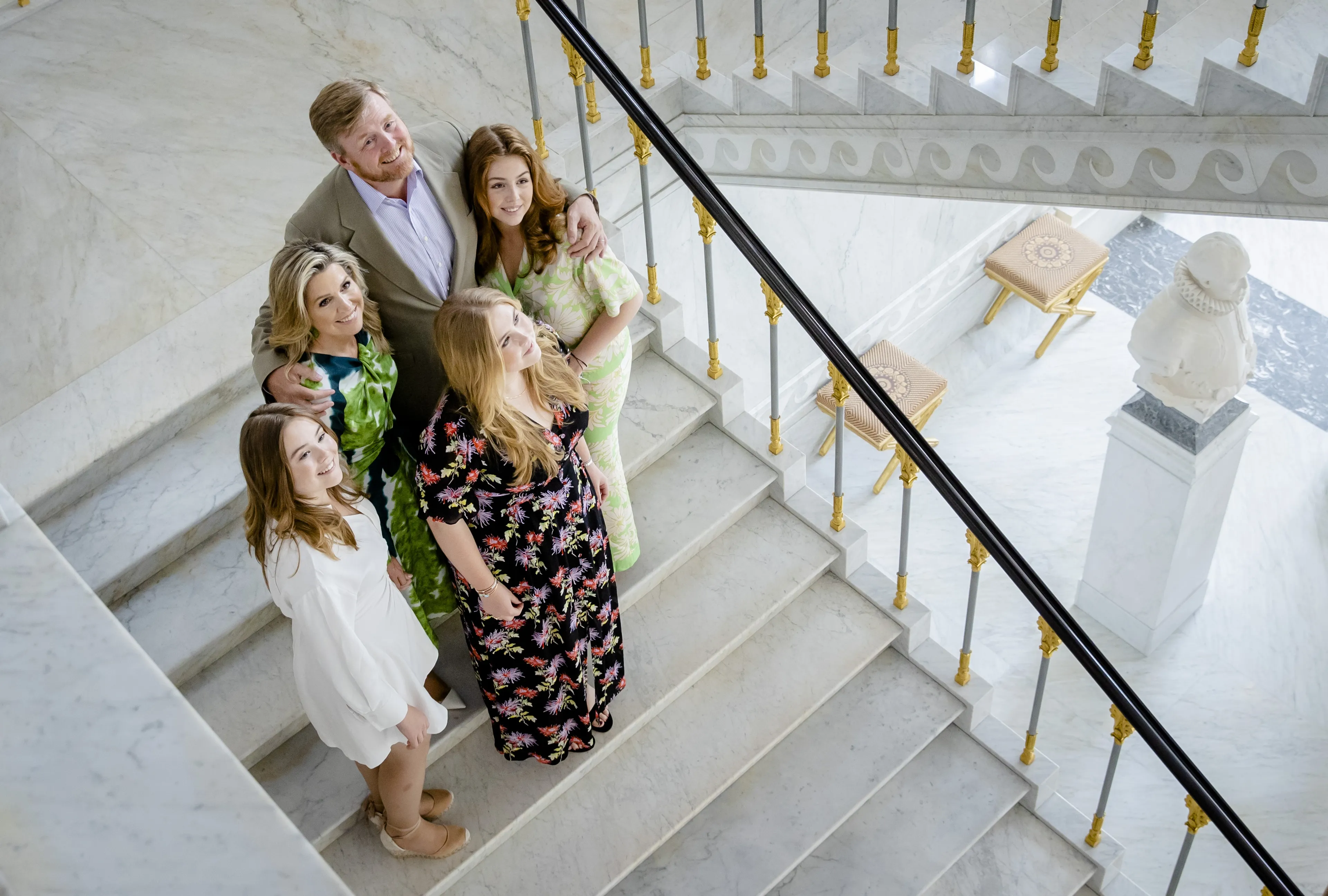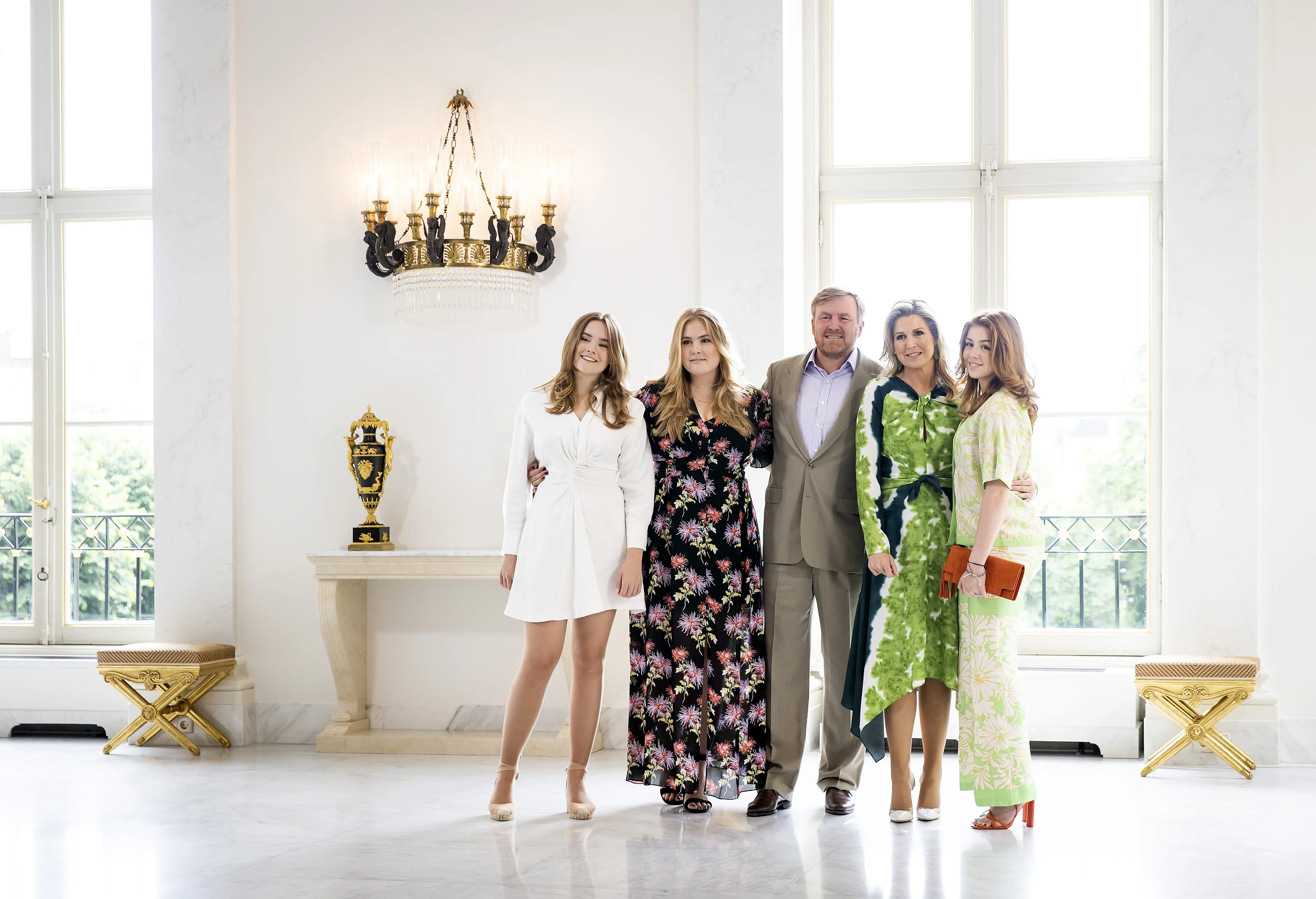 Koning Willem-Alexander, koningin Máxima en de prinsessen Amalia, Alexia en Ariane hebben vrijdagmiddag in Paleis Noordeinde geposeerd voor de jaarlijkse zomerfotosessie. De shoot was vanwege de slechte weersvoorspellingen verplaatst van het strand naar het werkpaleis van het koningspaar.