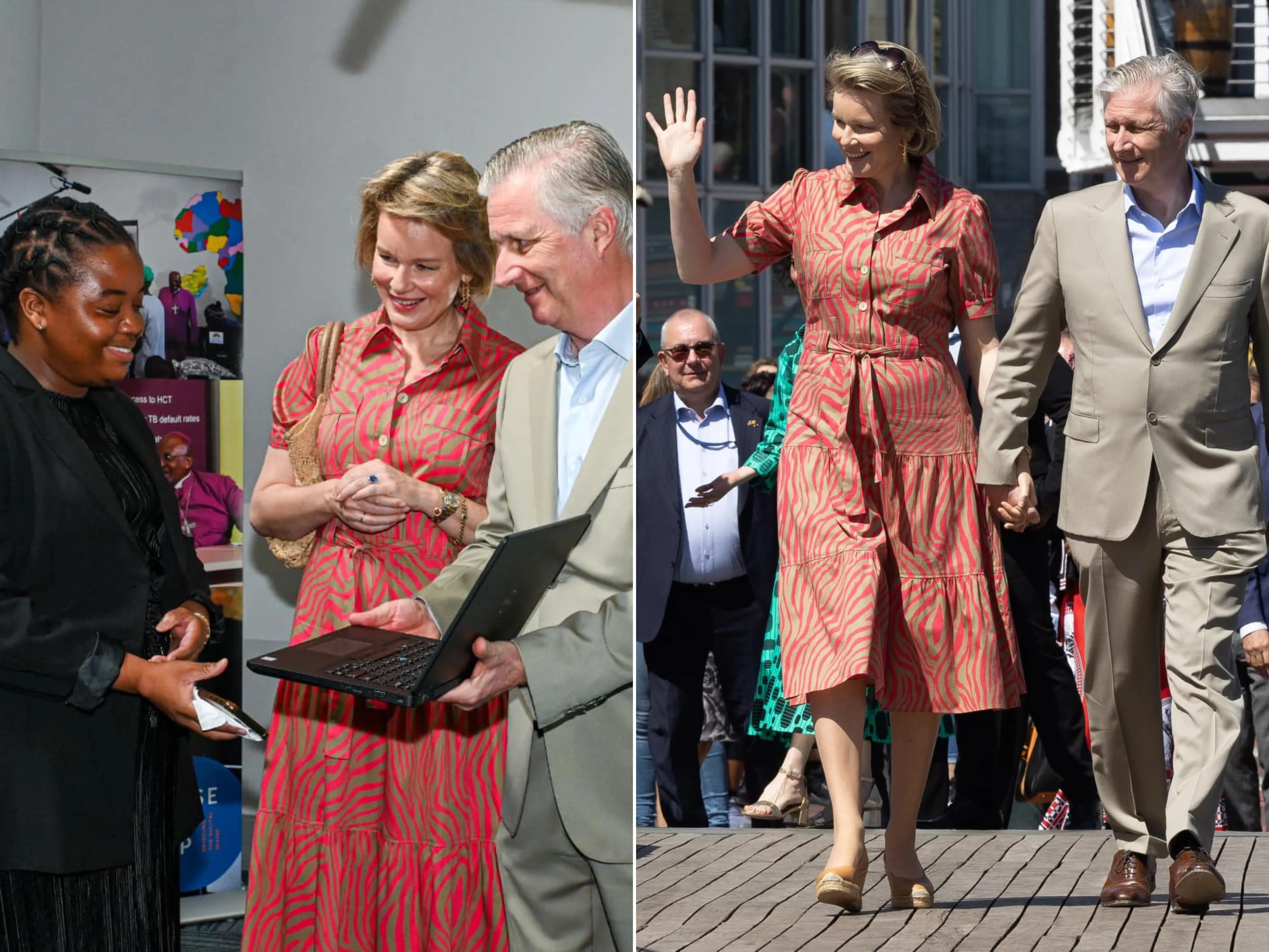 De vierde en laatste dag van het staatsbezoek stond in het teken van cultuur en natuur. Het koningspaar bracht een bezoek aan Philippi Village, een voormalige cementfabriek die omgebouwd is tot een ondernemerscentrum in de township Philippi. Koningin Mathilde verscheen hier in een jurk met een zalmroze en beige zebraprint. De jurk komt van het modehuis Marie Méro.
