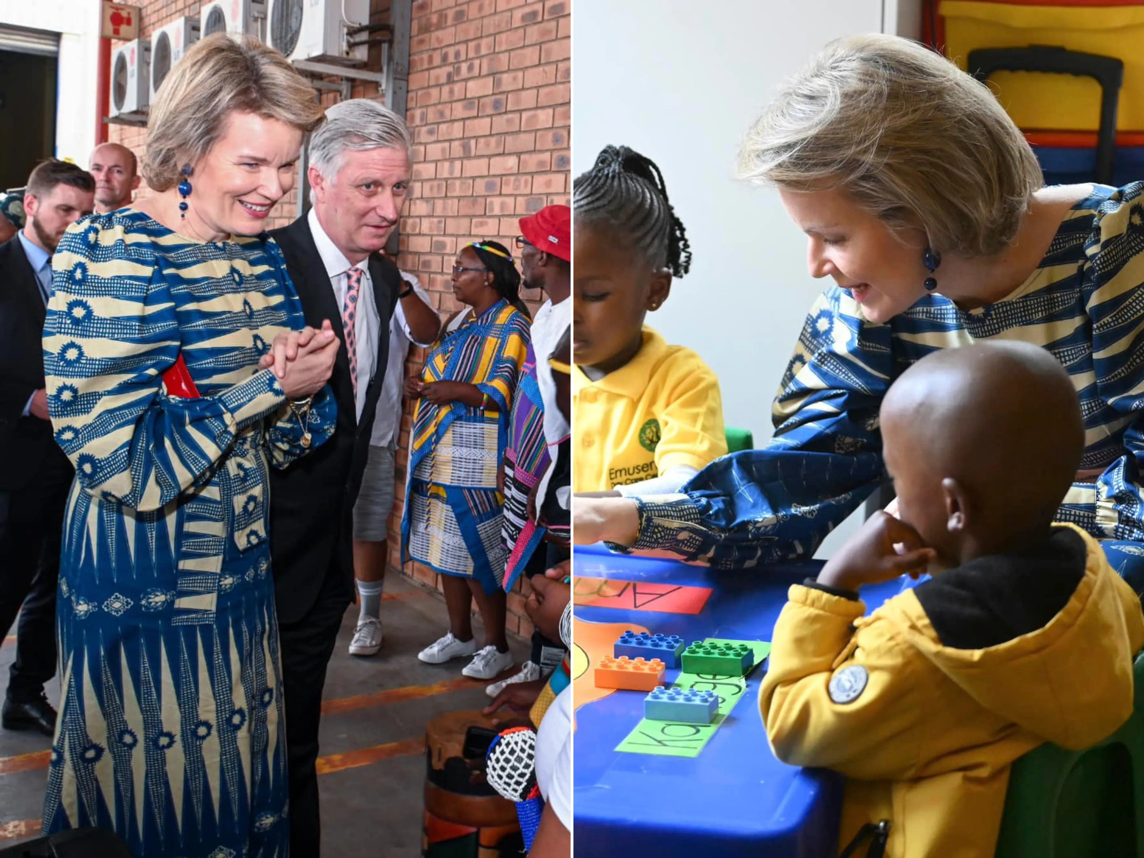 De tweede dag van het staatsbezoek vond plaats in Johannesburg. De Belgische koningin droeg hier een jurk met lange mouwen tijdens de bezoeken aan een kinderdagverblijf, skatepark en een fabriek. De jurk heeft een opvallend blauw-beige patroon en is een ontwerp van Odile Jacobs.