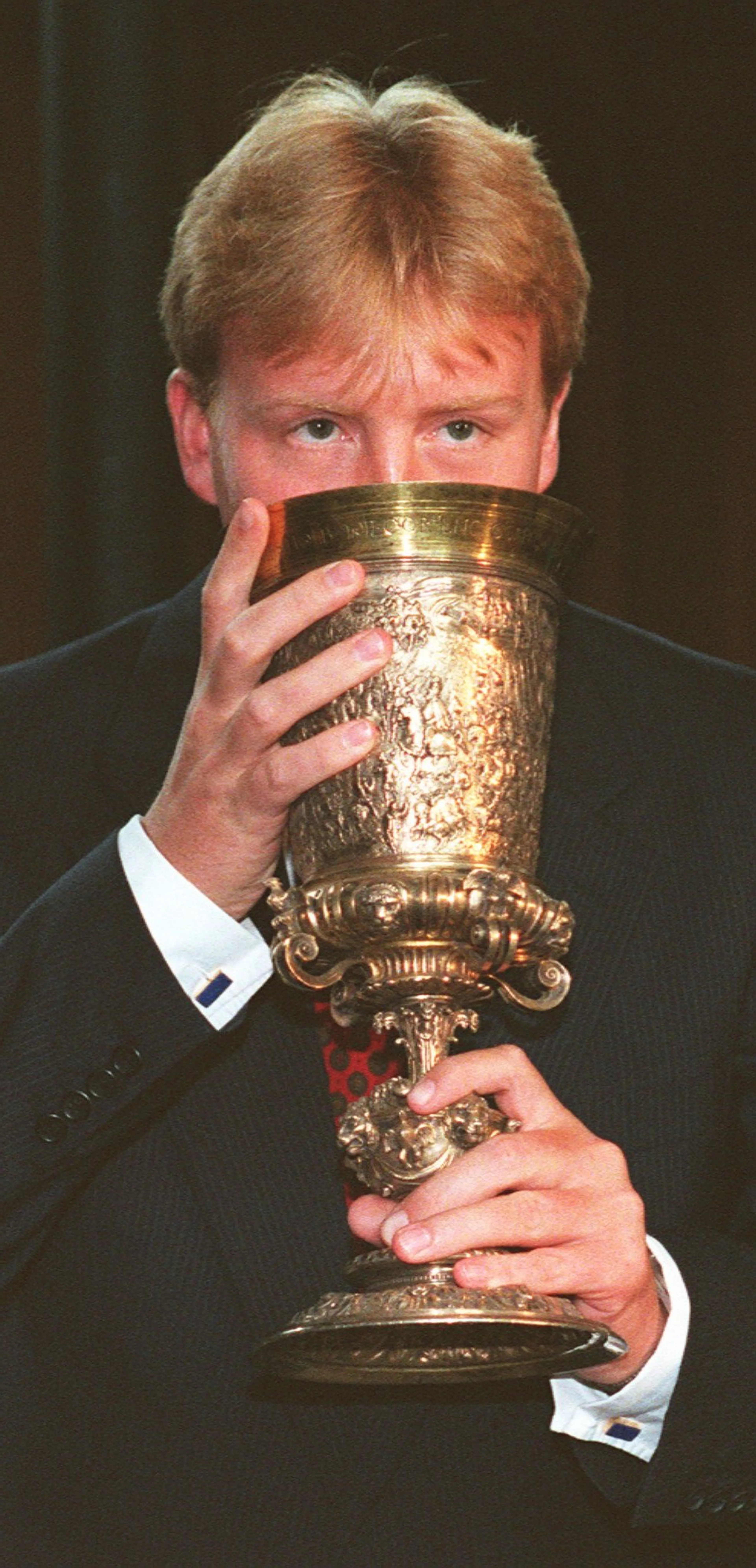 De Beker van Maximiliaan van Bourgondië wordt zelden uit de kluis van het gemeentehuis gehaald, maar voor de kroonprins wordt een uitzondering gemaakt. Hij dronk een witte wijn uit de beker die destijds 15 miljoen gulden waard was.