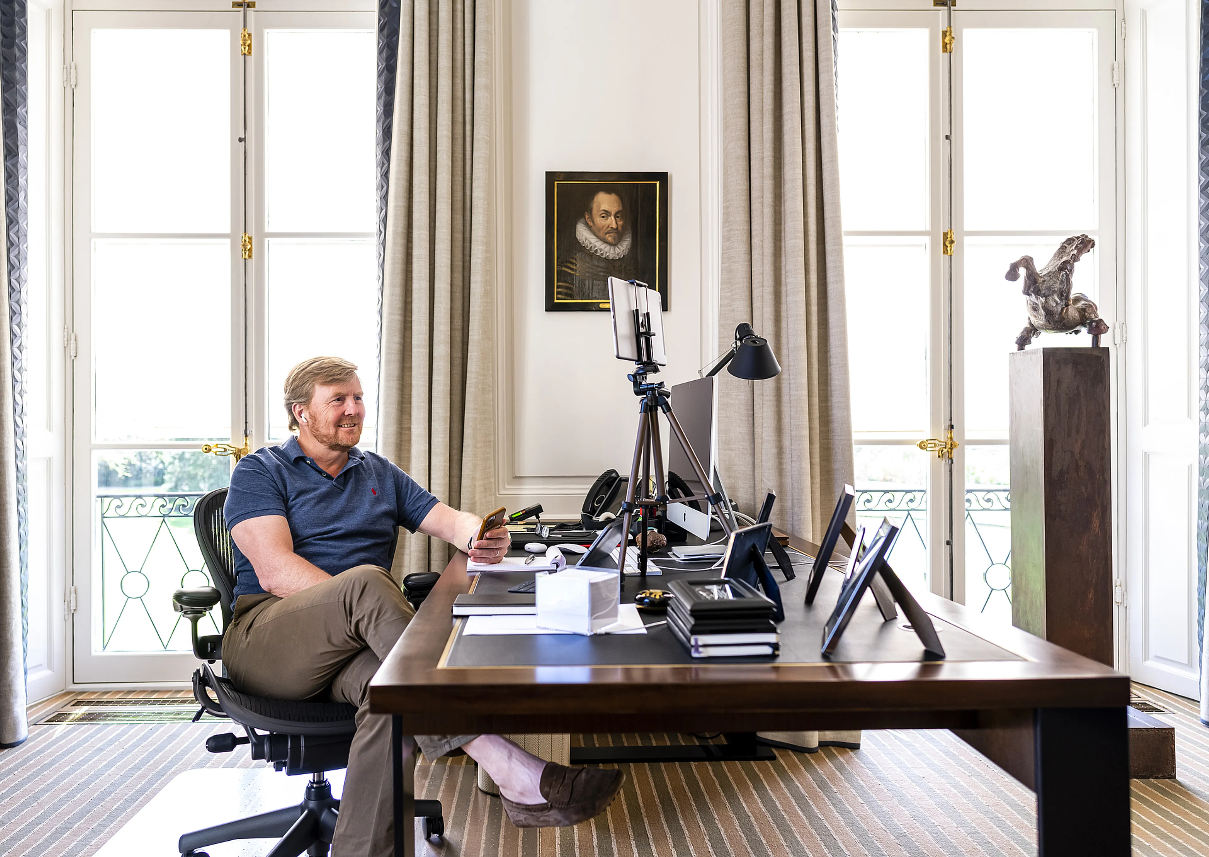 Koning Willem-Alexander heeft toegegeven dat hij tijdens de coronacrisis, net als iedereen, weleens in zijn trainingsbroek videobelde. "Ja natuurlijk deed ik dat", zegt hij lachend in de derde aflevering van de podcast Door de ogen van de Koning, waarin hij terugblikt op tien jaar koningschap.