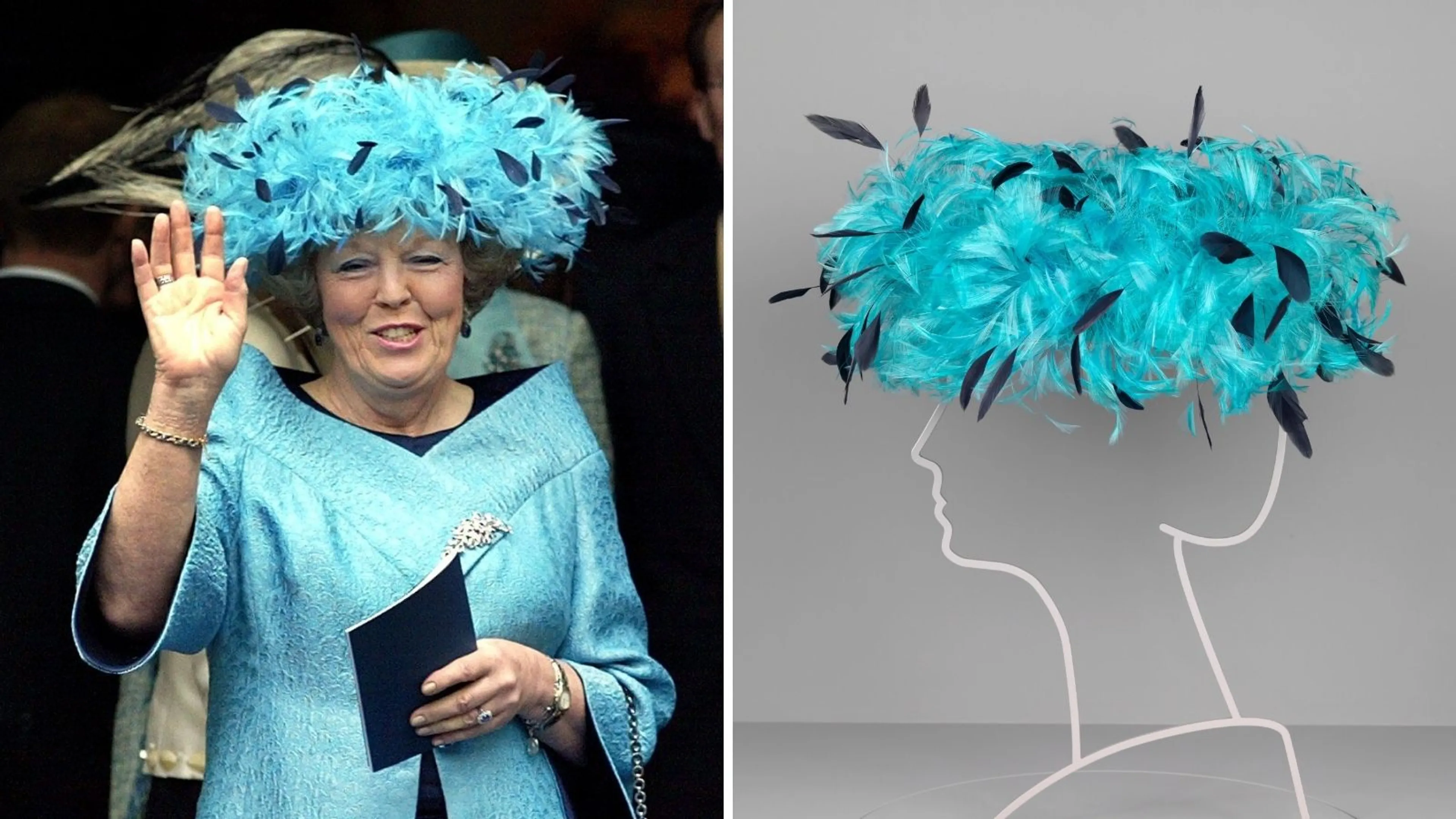 Naast alle anderen beelden zijn ook de iconische hoeden van Beatrix te zien. Onder andere staan daar twee ontwerpen van Suzanne Moulijn. De paarse hoed droeg ze bij het huwelijk van Willem-Alexander en Máxima en de blauwe creatie bij het huwelijk van Friso en Mabel.