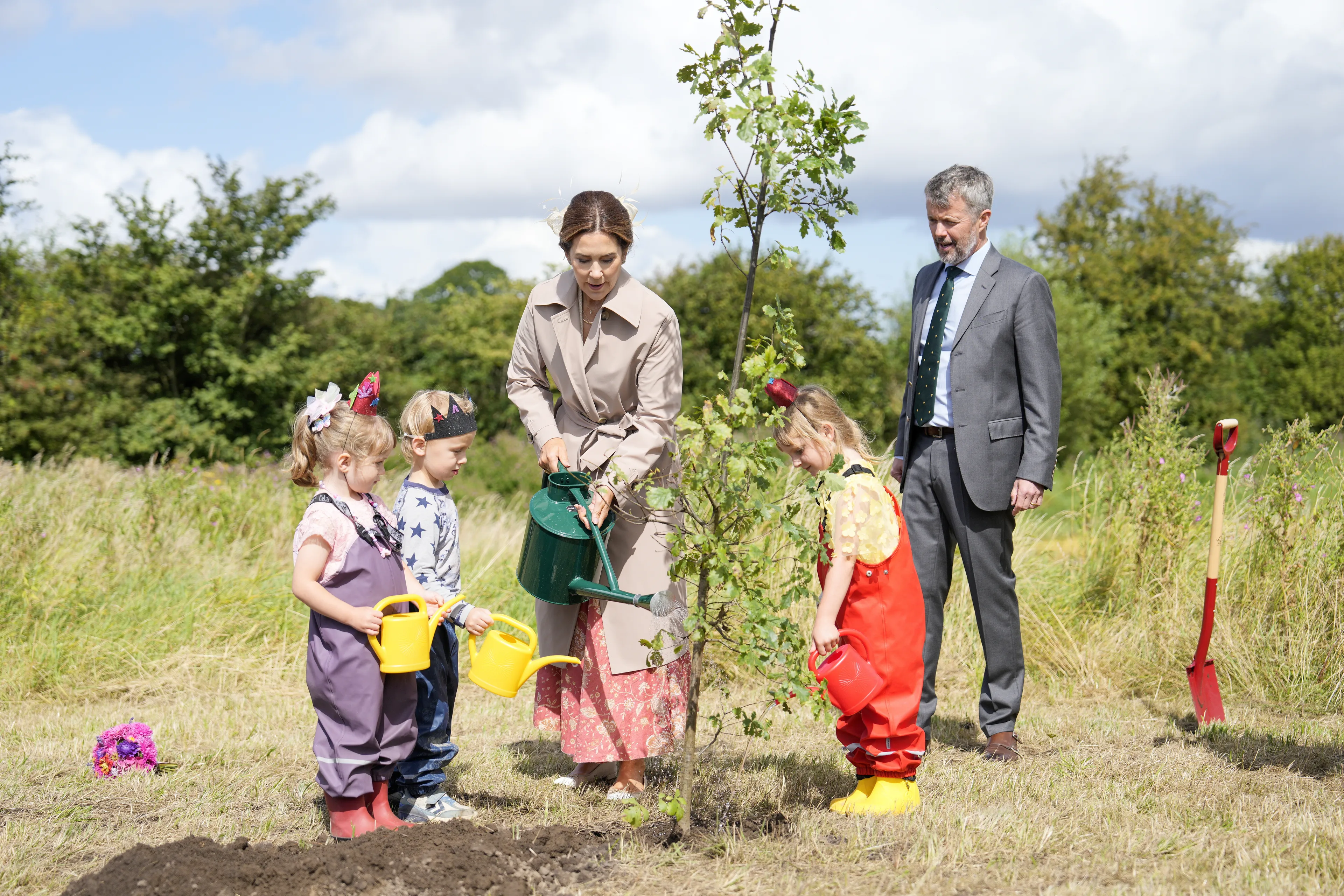 Later op de dag bezoekt het Deense koningspaar ook nog een herbebossing-project en een milieu- en energiezuinige afvalwaterzuiveringsinstallatie.